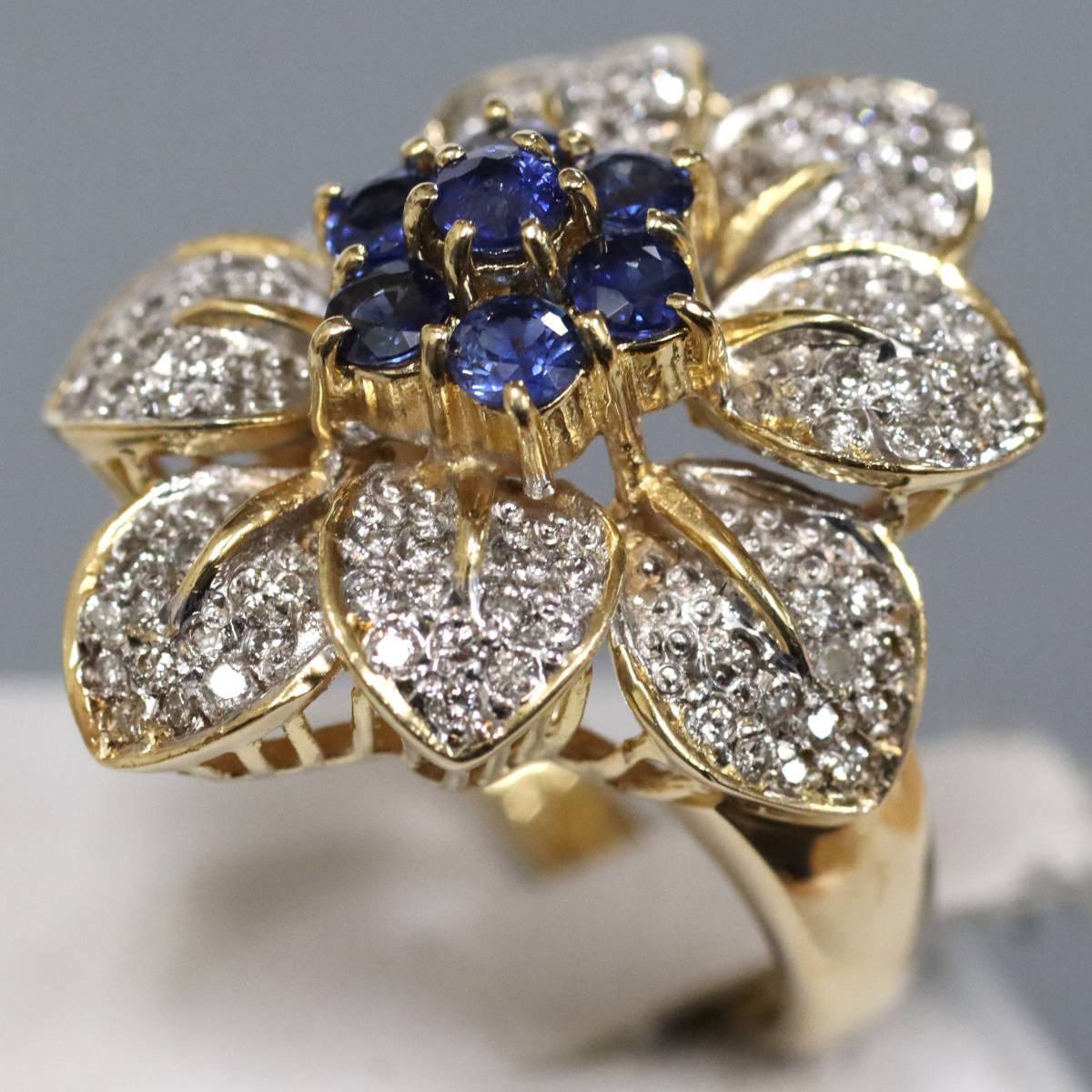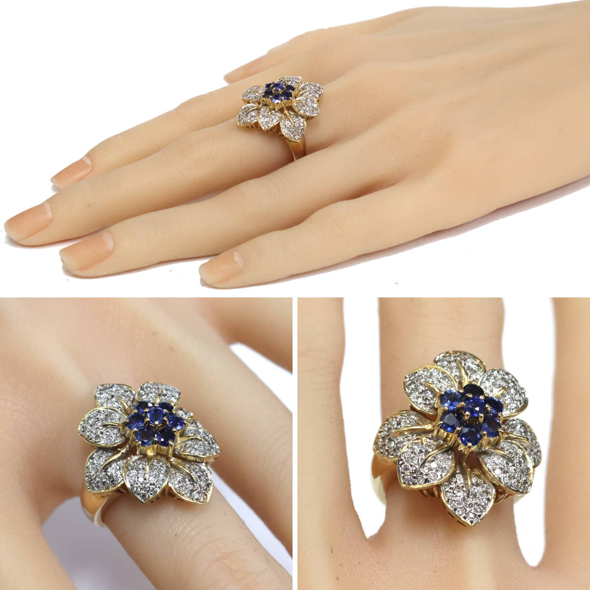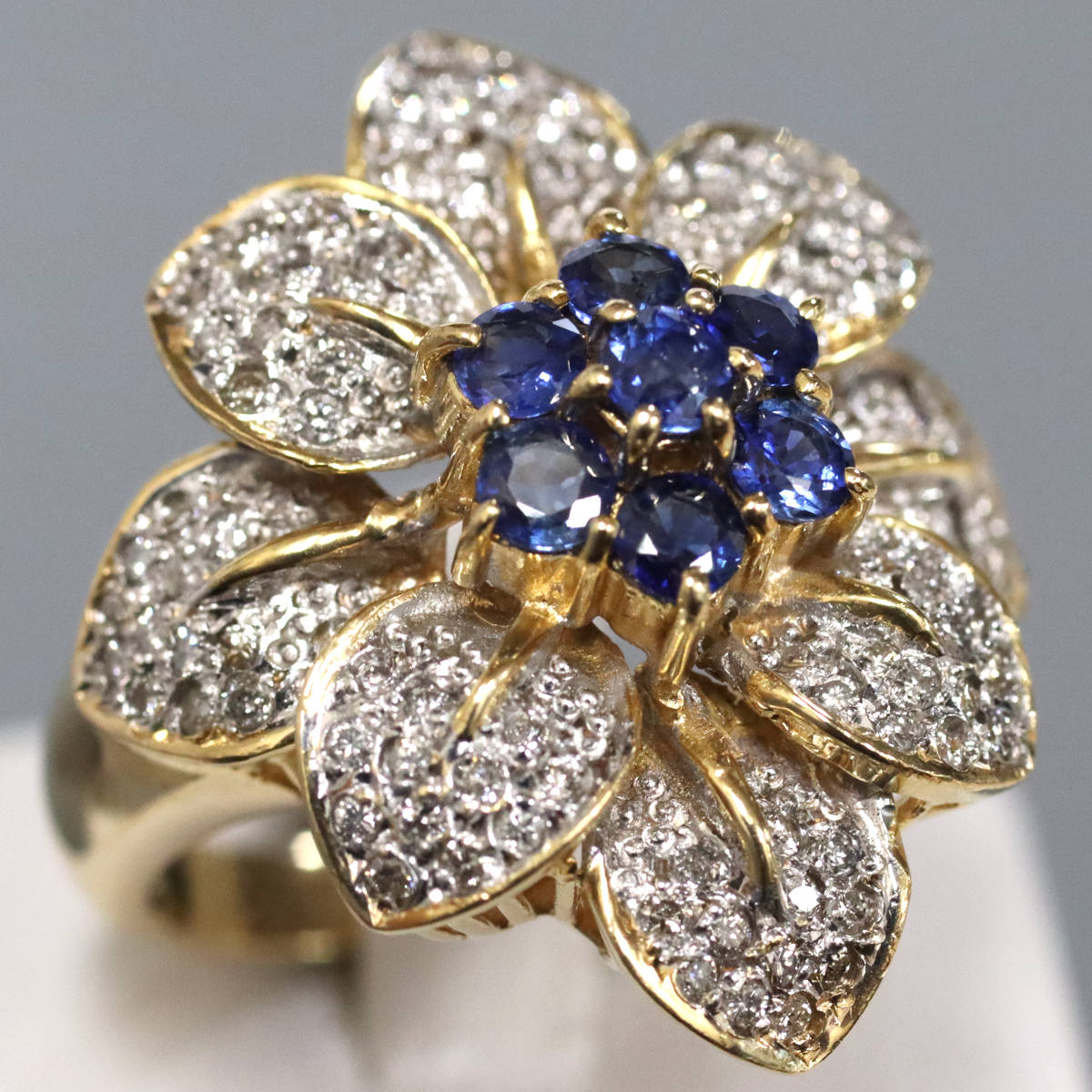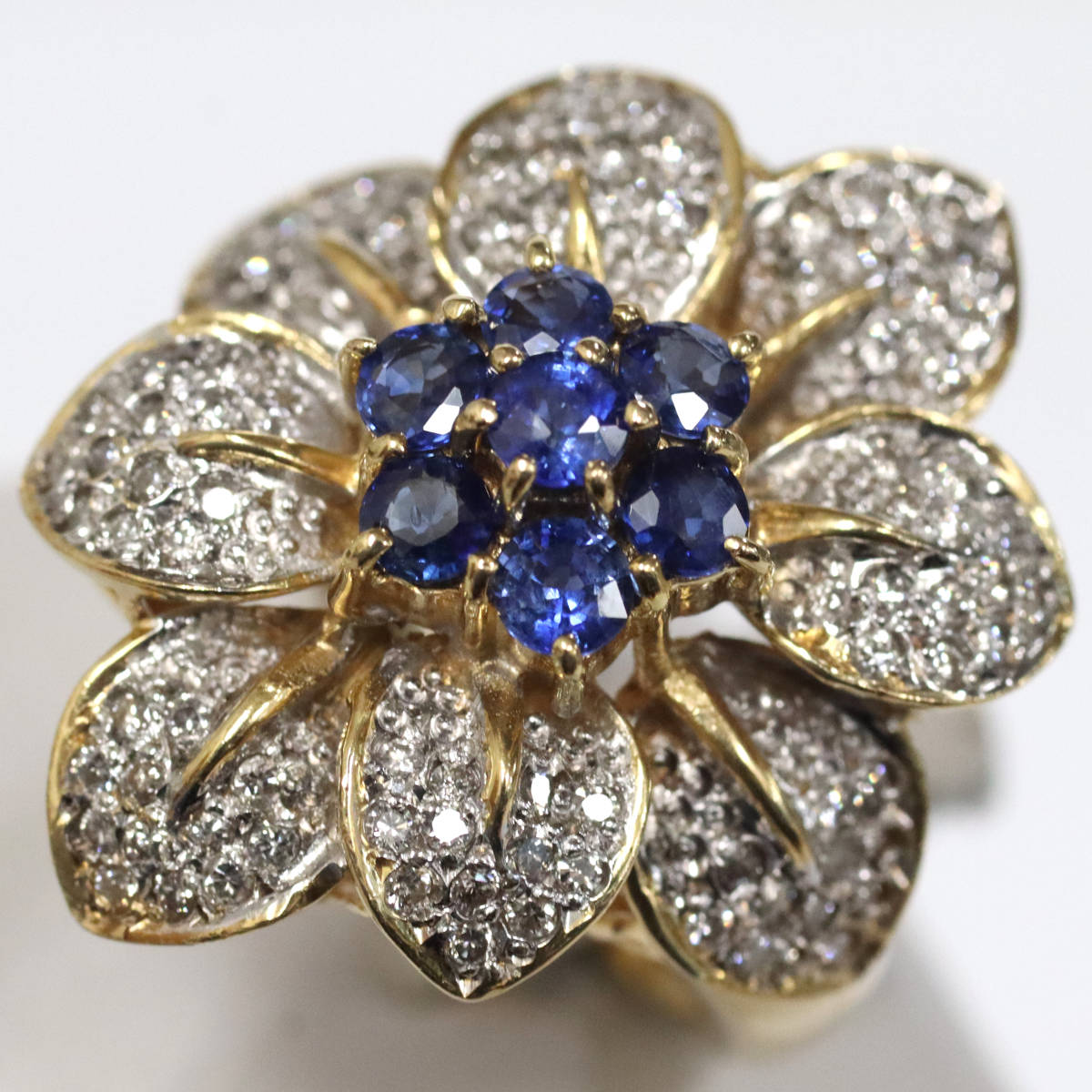 K18YG/WGサファイアダイヤモンドリング フラワーモチーフ S0.95 D0.45 11.0g #13.5