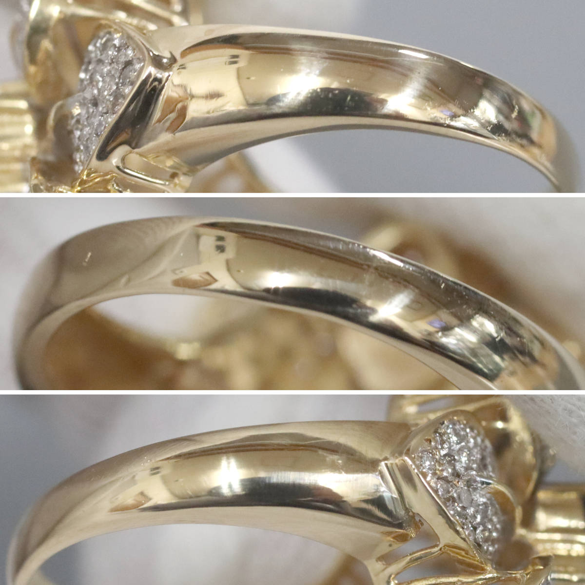 ダイヤモンドはややインクルージョンがあり、輝きは控えめです。