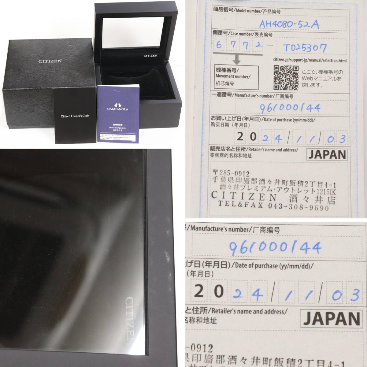 保証書が付属し、記載の購入日は2024年11月3日です。