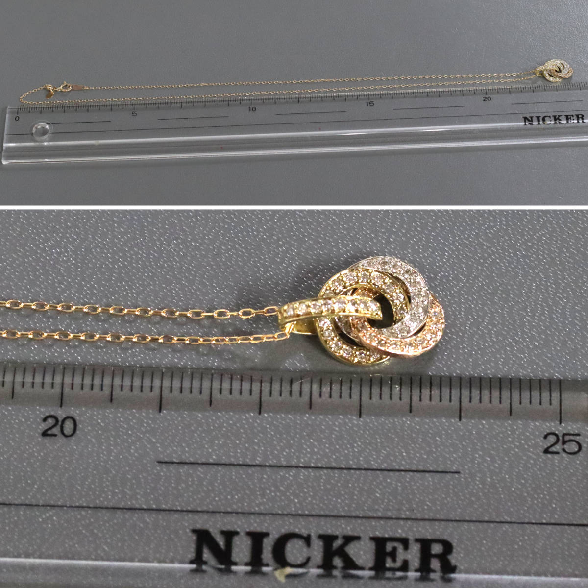 K18YG/PG/Pt900ダイヤモンドペンダント D0.35 3.8g AJ付45cm