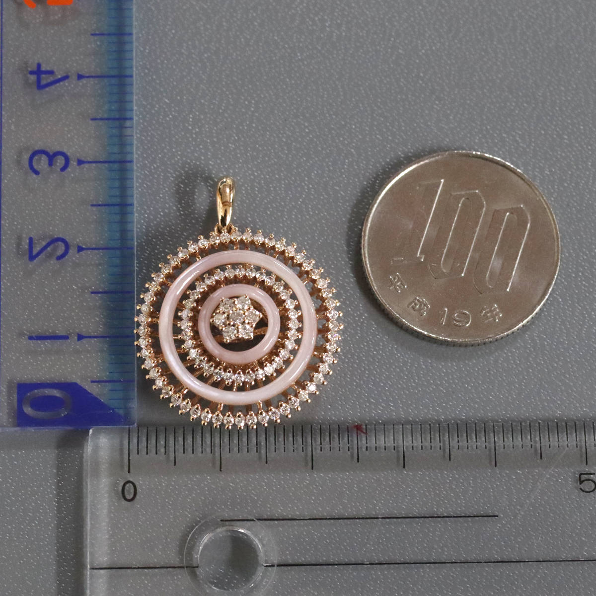 K18PGピンクシェルダイヤモンドペンダントトップの中古品です。