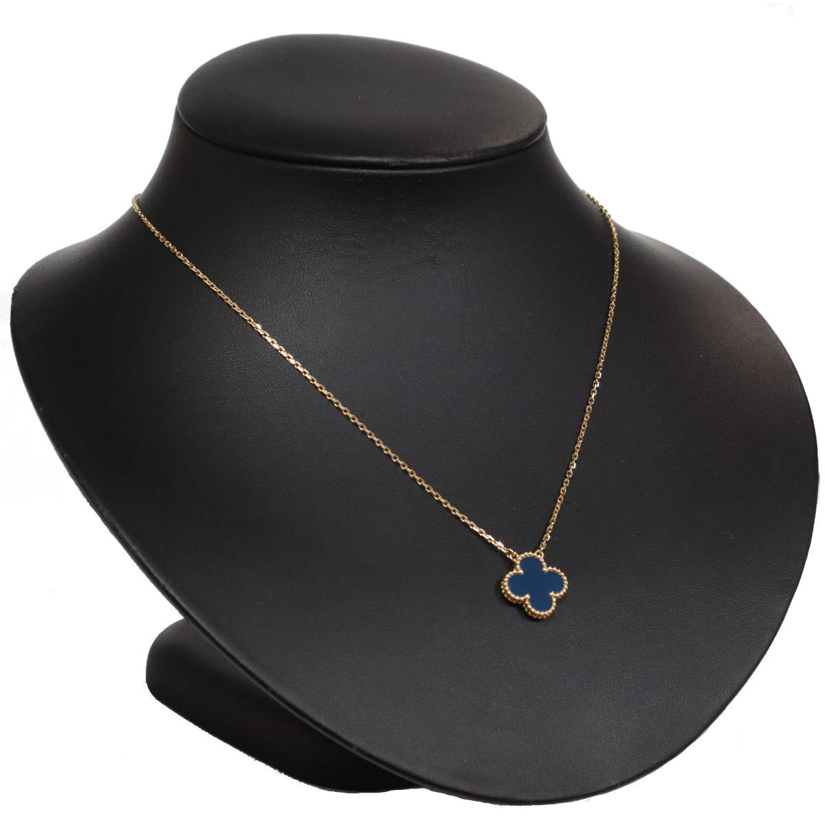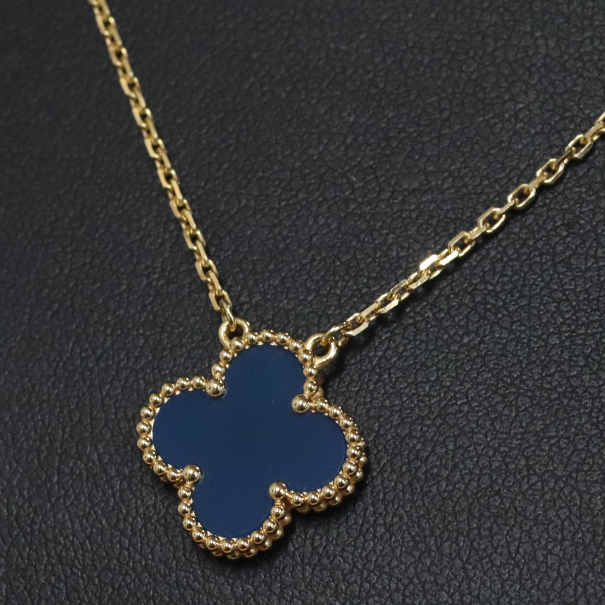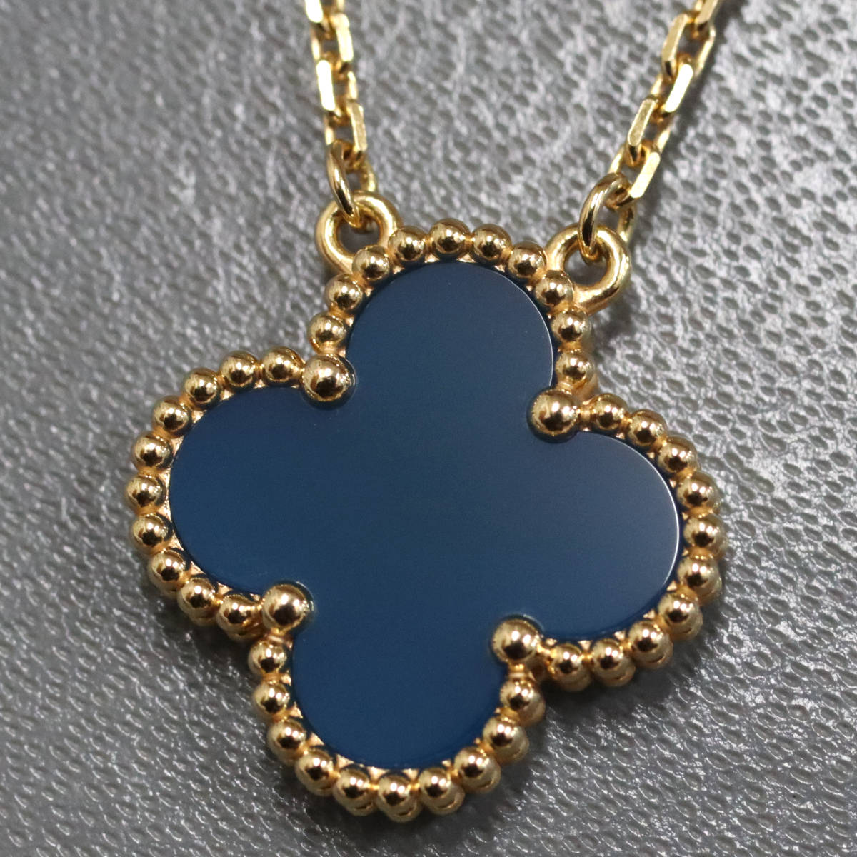 ヴァンクリーフ&アーペル ヴィンテージアルハンブラネックレス ブルーアゲート 750YG 5.1g(VCARP9SY00)内外箱 保証書 [25126088]