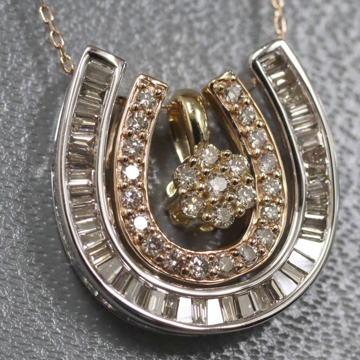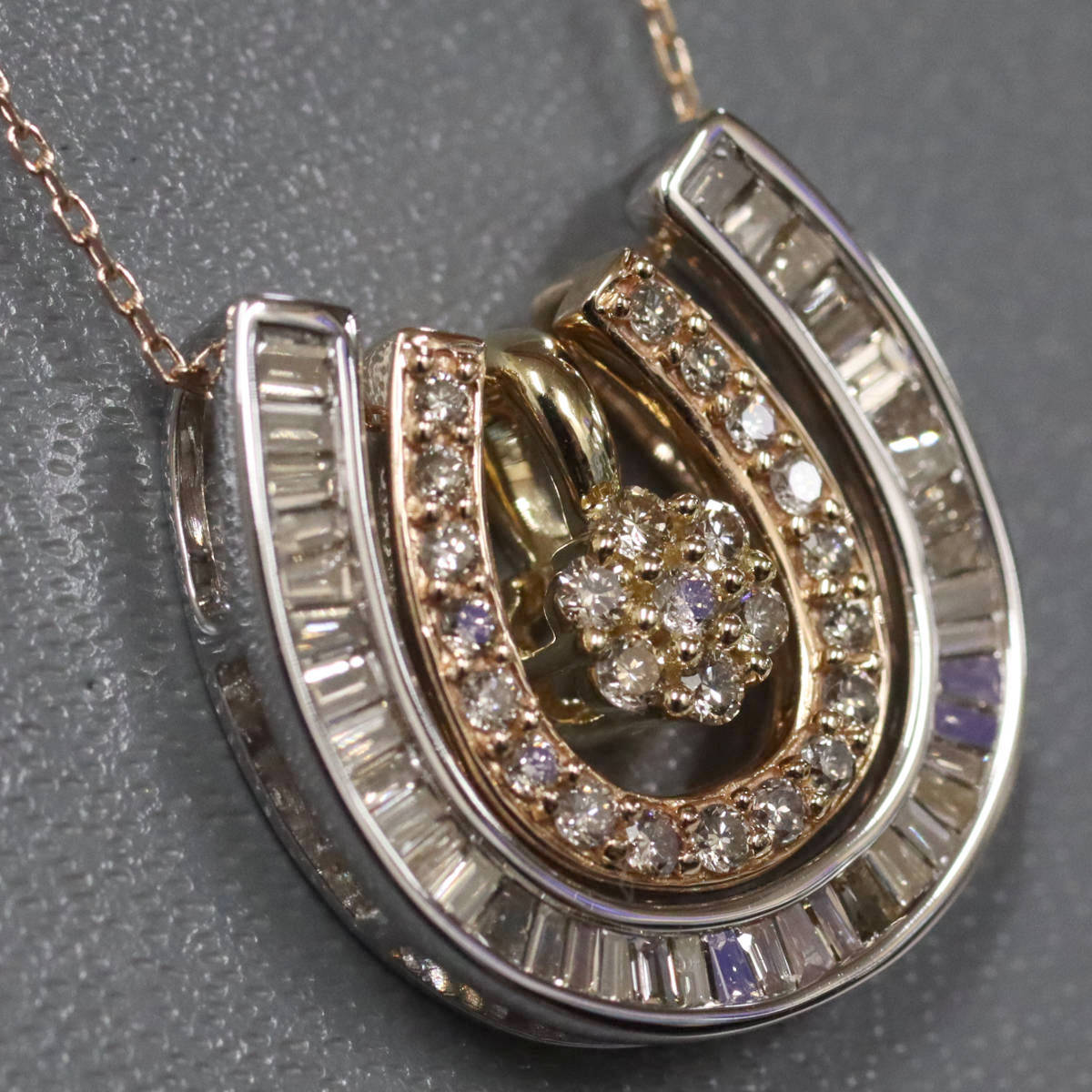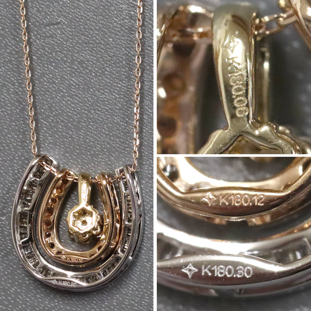 K18PG/WG/YGダイヤモンドペンダント 馬蹄モチーフ D0.06 D0.12 D0.30 4.0g AJ付50cm [25126084]