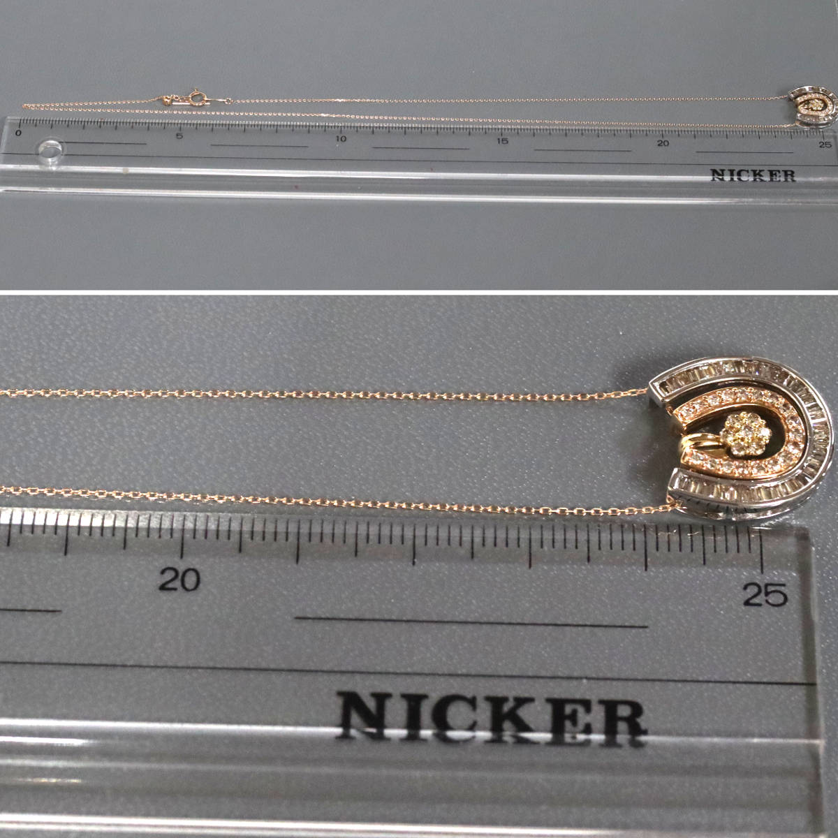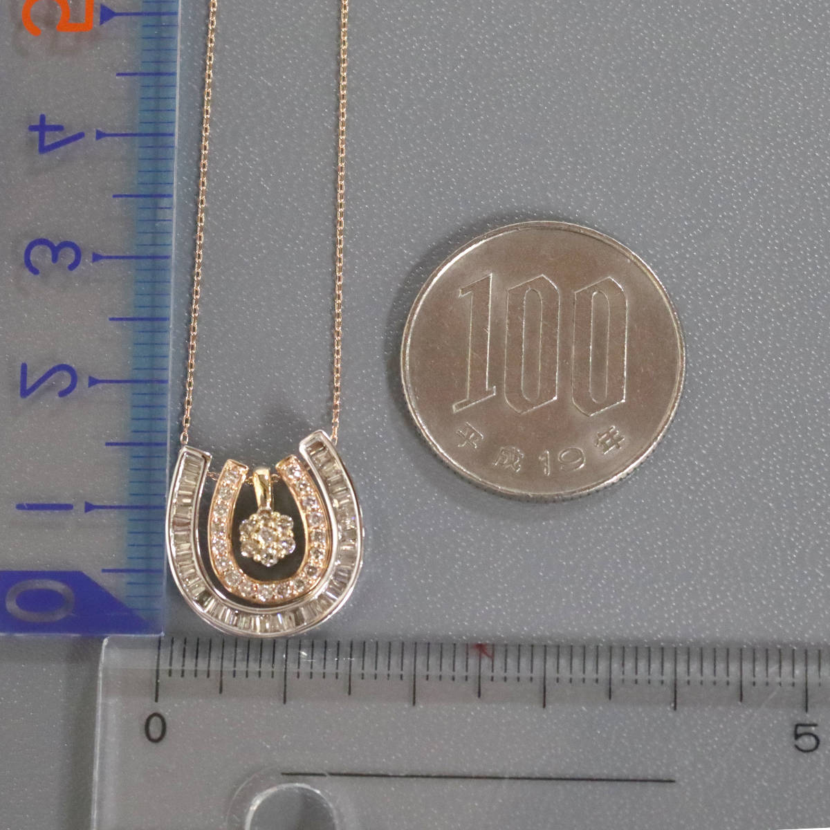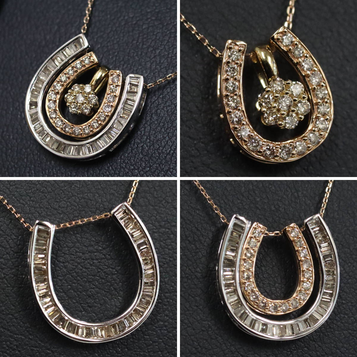 K18PG/WG/YGダイヤモンドペンダント 馬蹄モチーフ D0.06 D0.12 D0.30 4.0g AJ付50cm