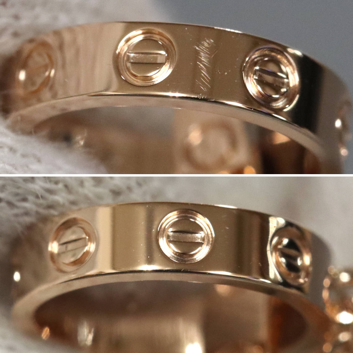 重なり合うリングに小傷があります。