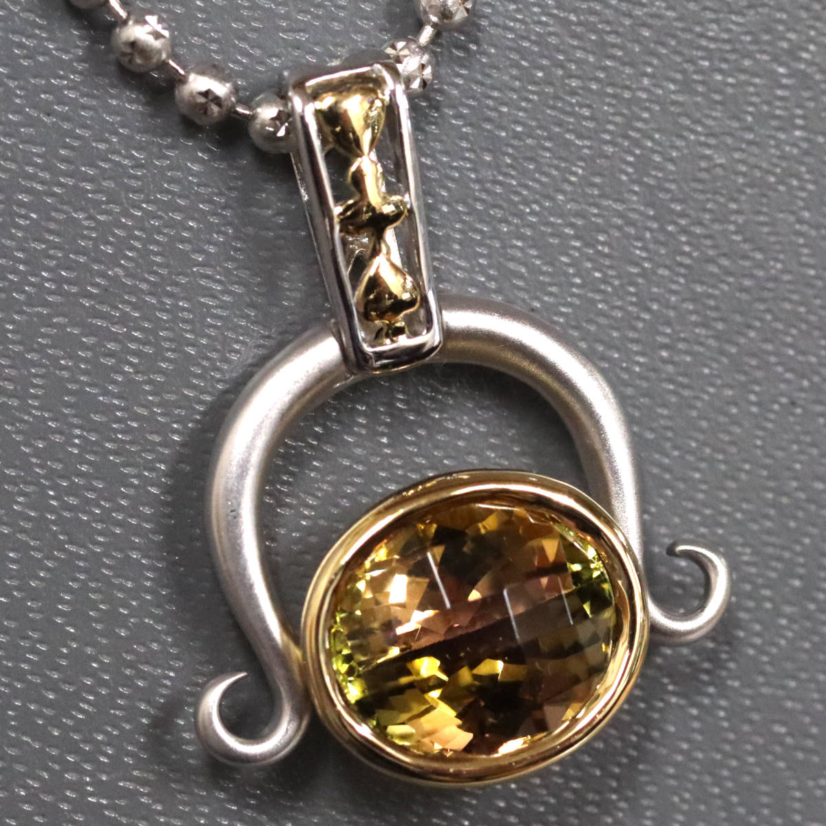 カラチのK18YG/WGトルマリンダイヤモンドペンダントの中古品です。
