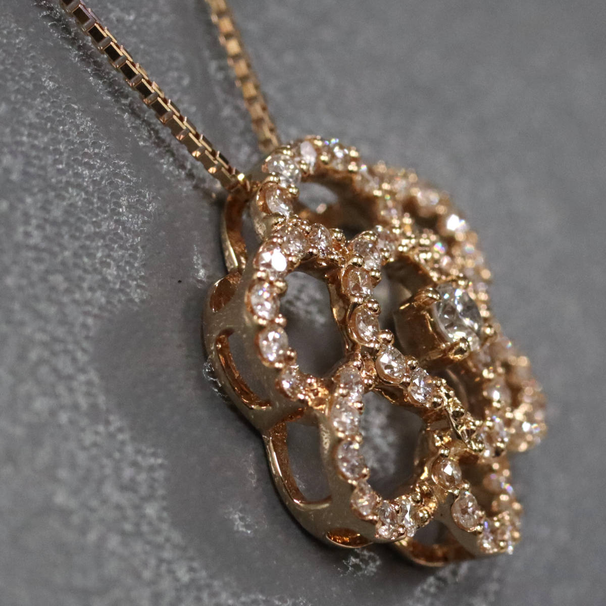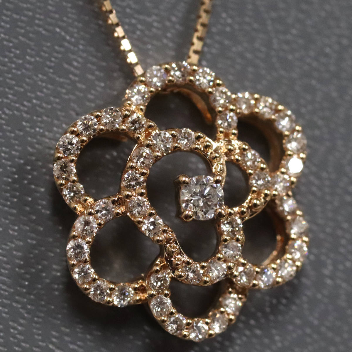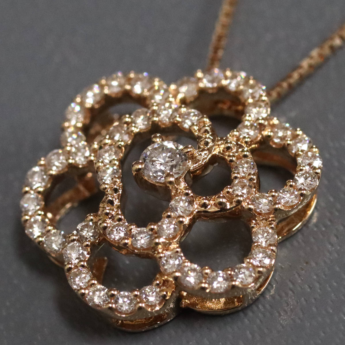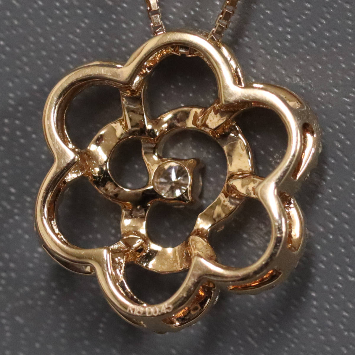 K18PGダイヤモンドペンダント フラワーモチーフ D0.45 4.0g AJ付45cm