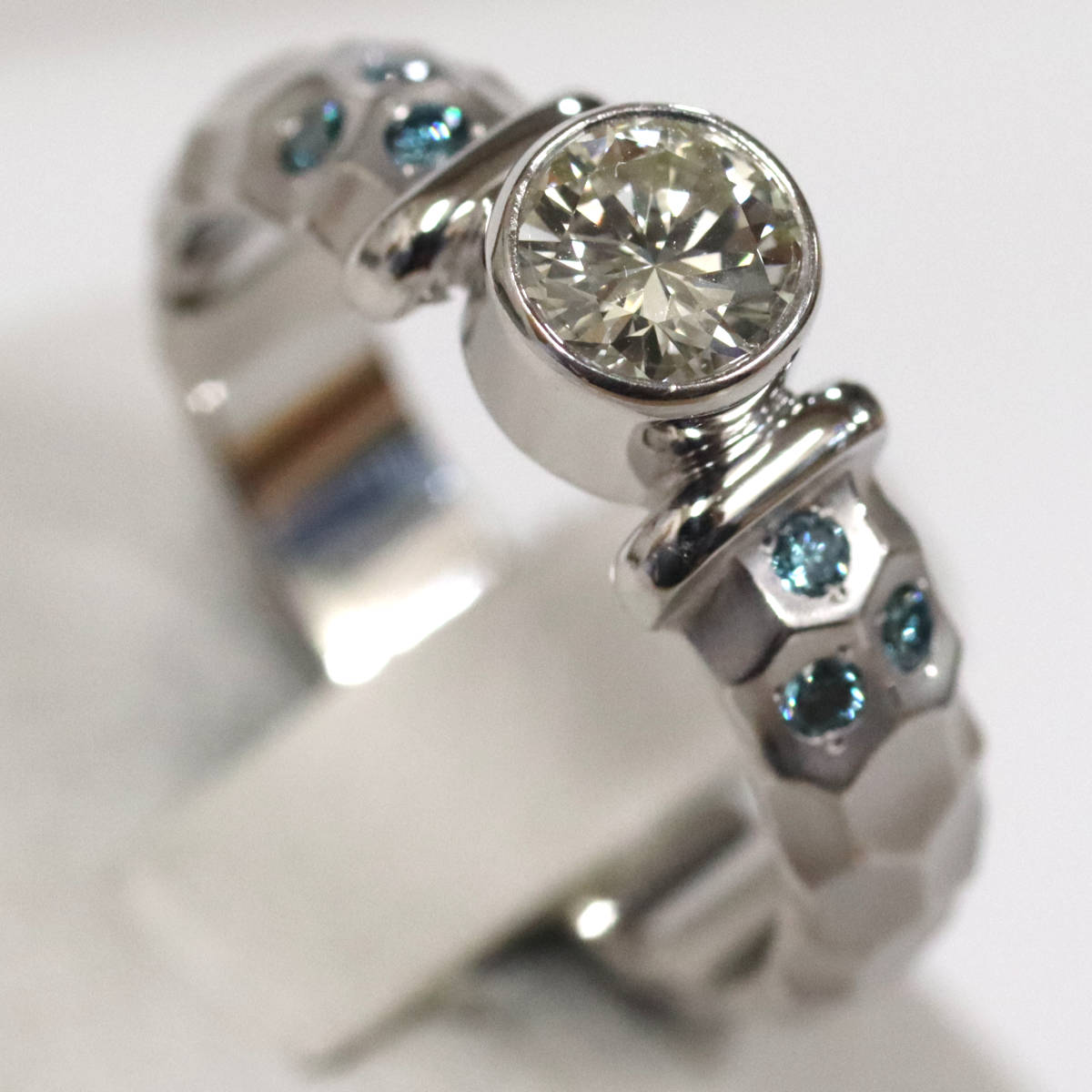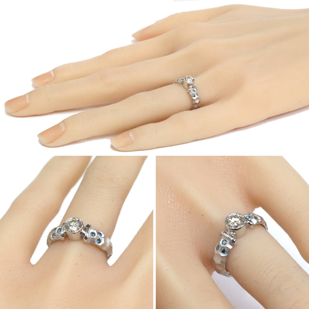 ブルーダイヤモンドがセットされていますが、色の起源は不明です。