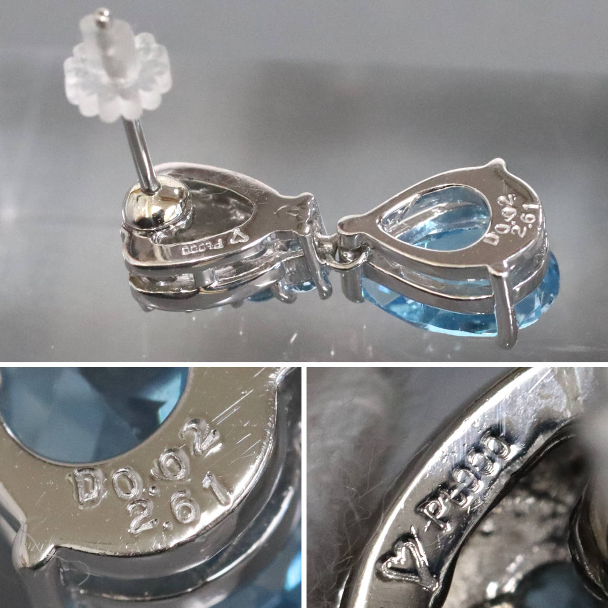 Pt900ブルートパーズダイヤモンドピアス BT2.61×2 D0.02×2 9.0g