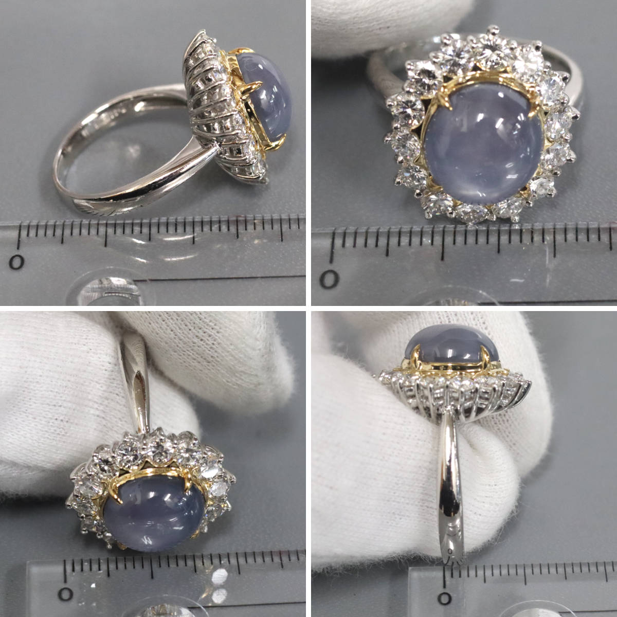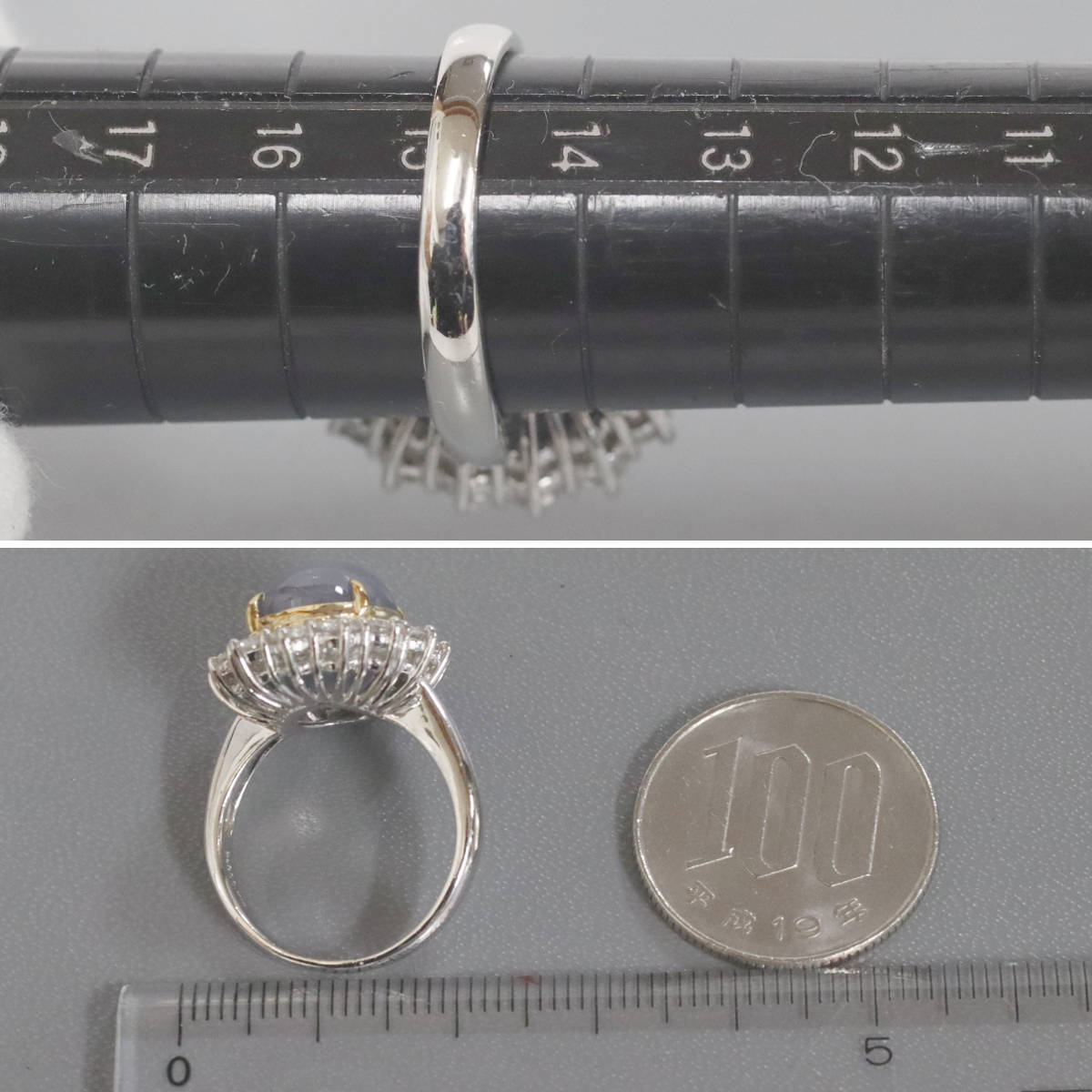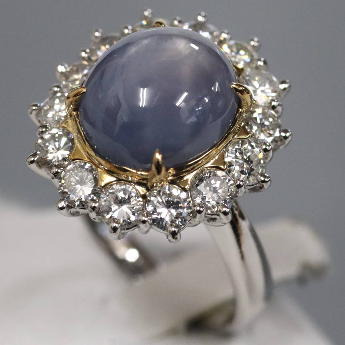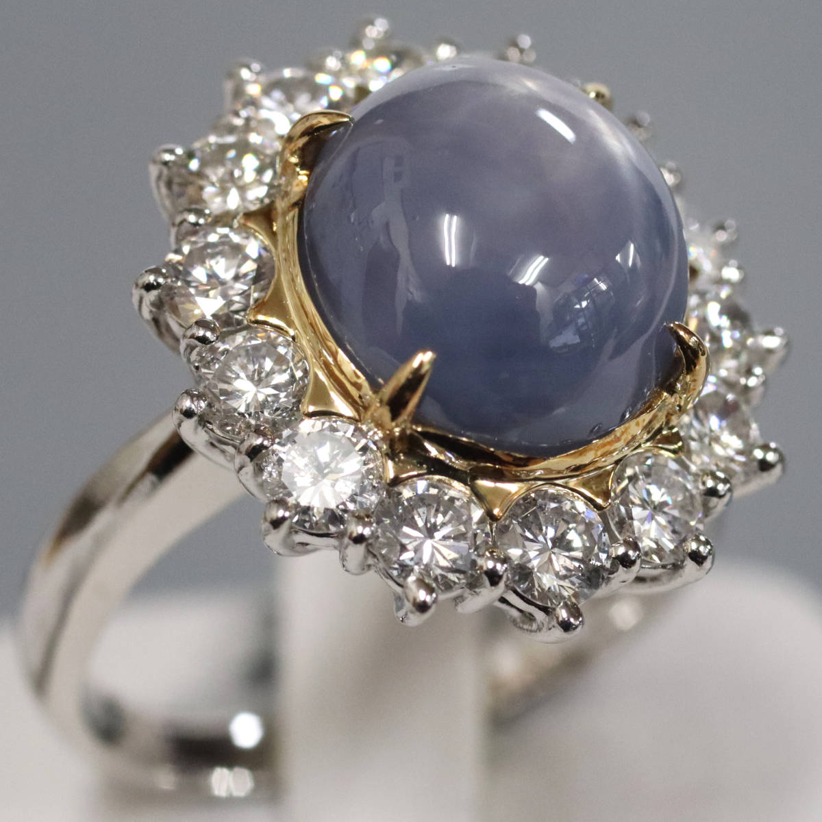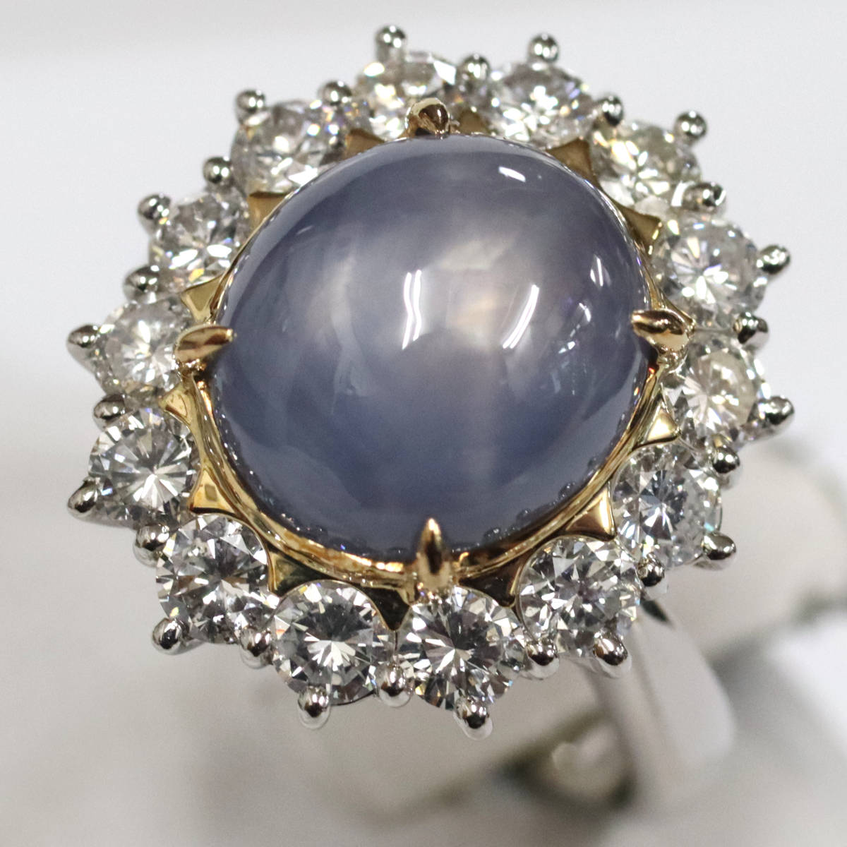 Pt900/K18スターサファイアダイヤモンドリング S12.90 D1.69 13.0g #15