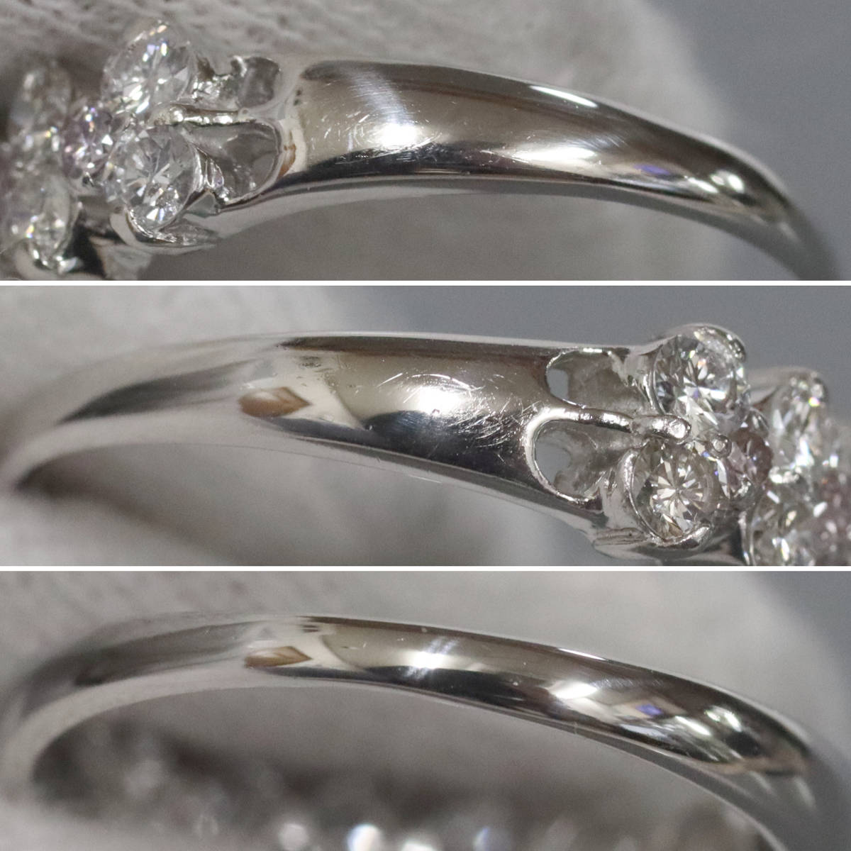 ダイヤモンドはややインクルージョンがありますが、非常に照りよく輝きます。