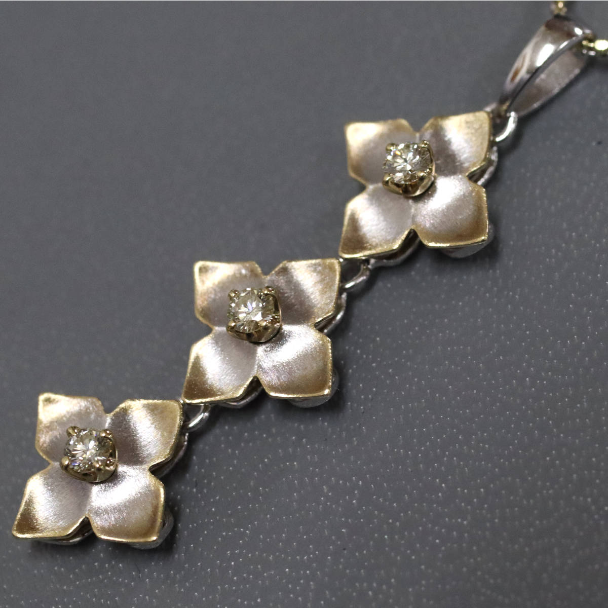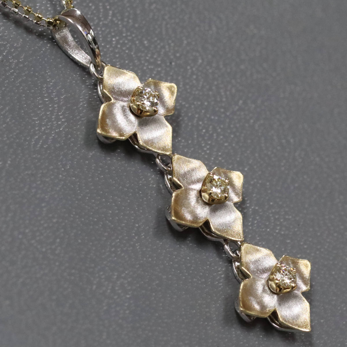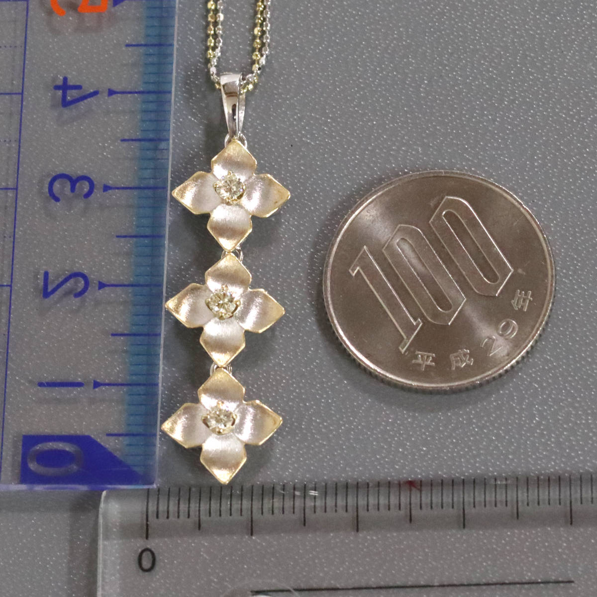 K18YG/WGダイヤモンドペンダント フラワーモチーフ 2連チェーン D0.20 7.0g AJ付45cm