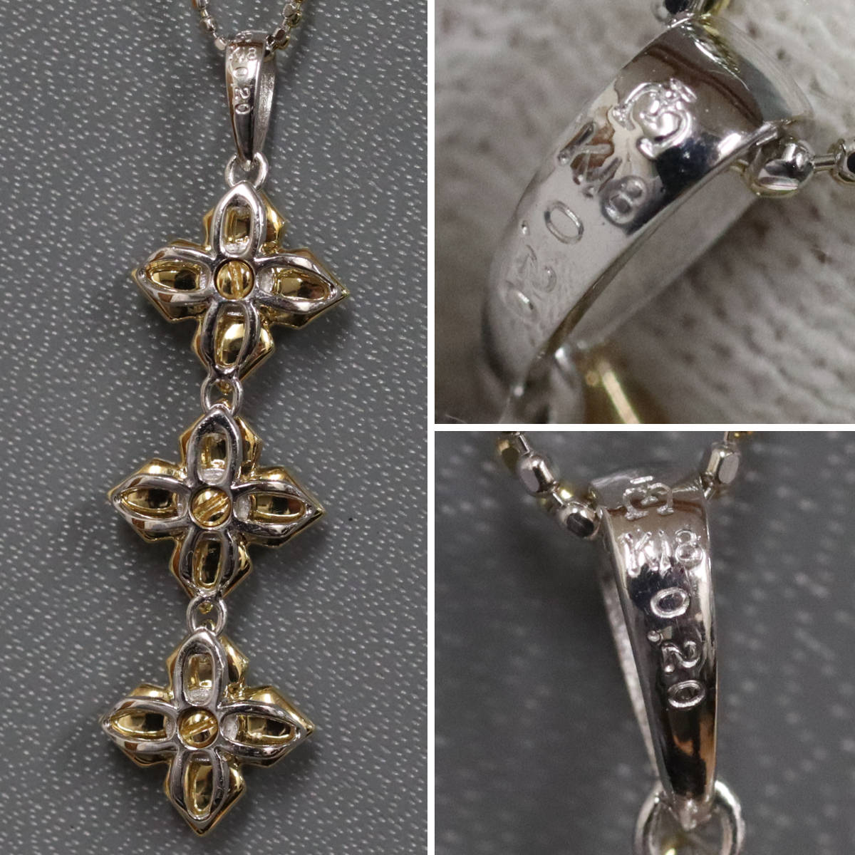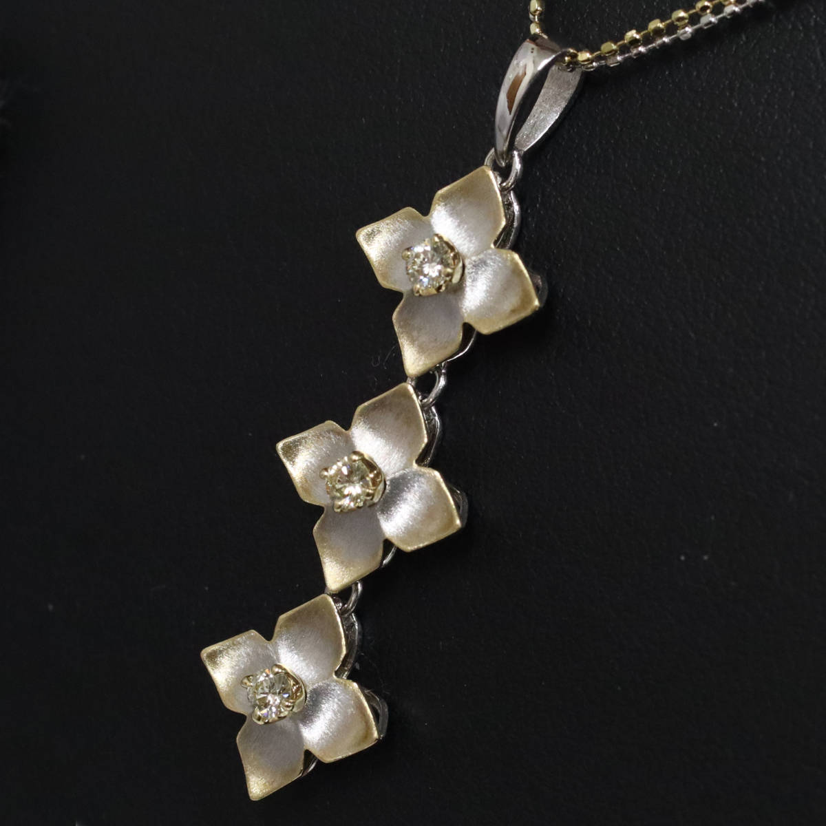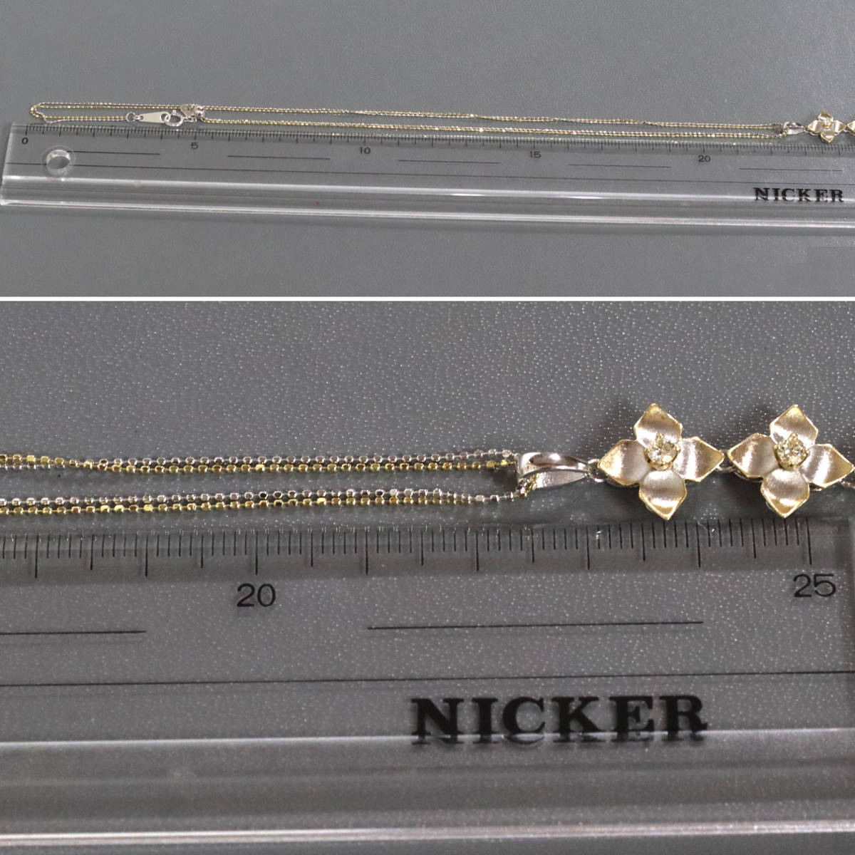 K18YG/WGダイヤモンドペンダント フラワーモチーフ 2連チェーン D0.20 7.0g AJ付45cm