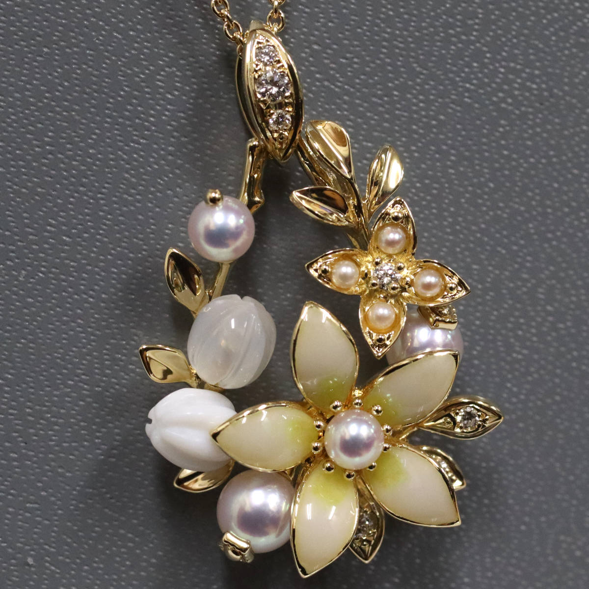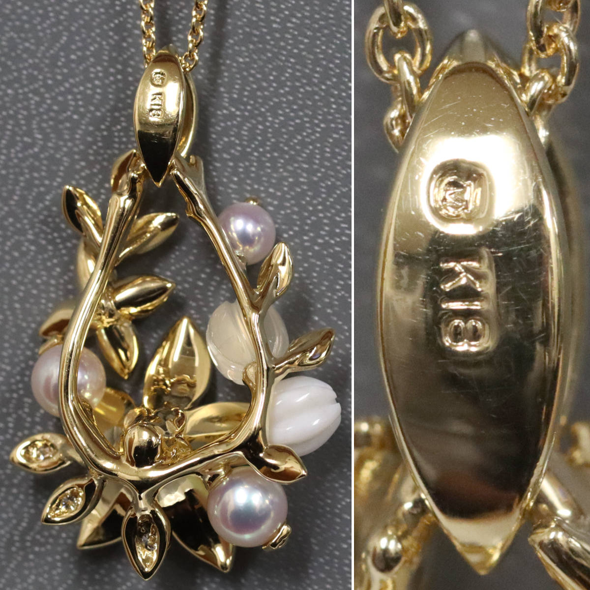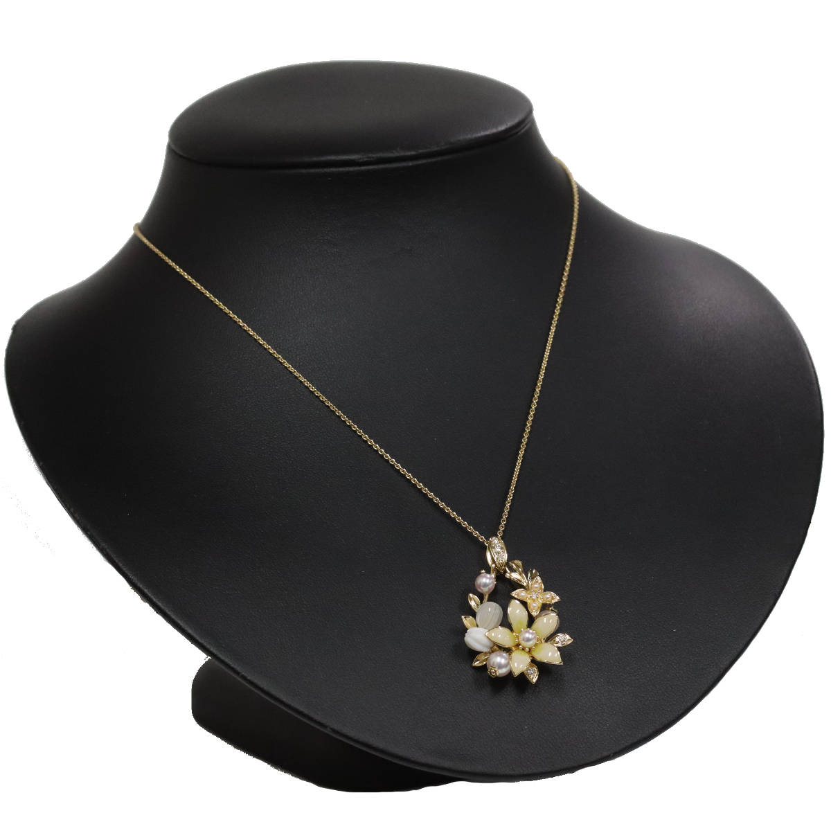 ミキモト K18パールダイヤモンドペンダント フラワーモチーフ 11.6g 44cm