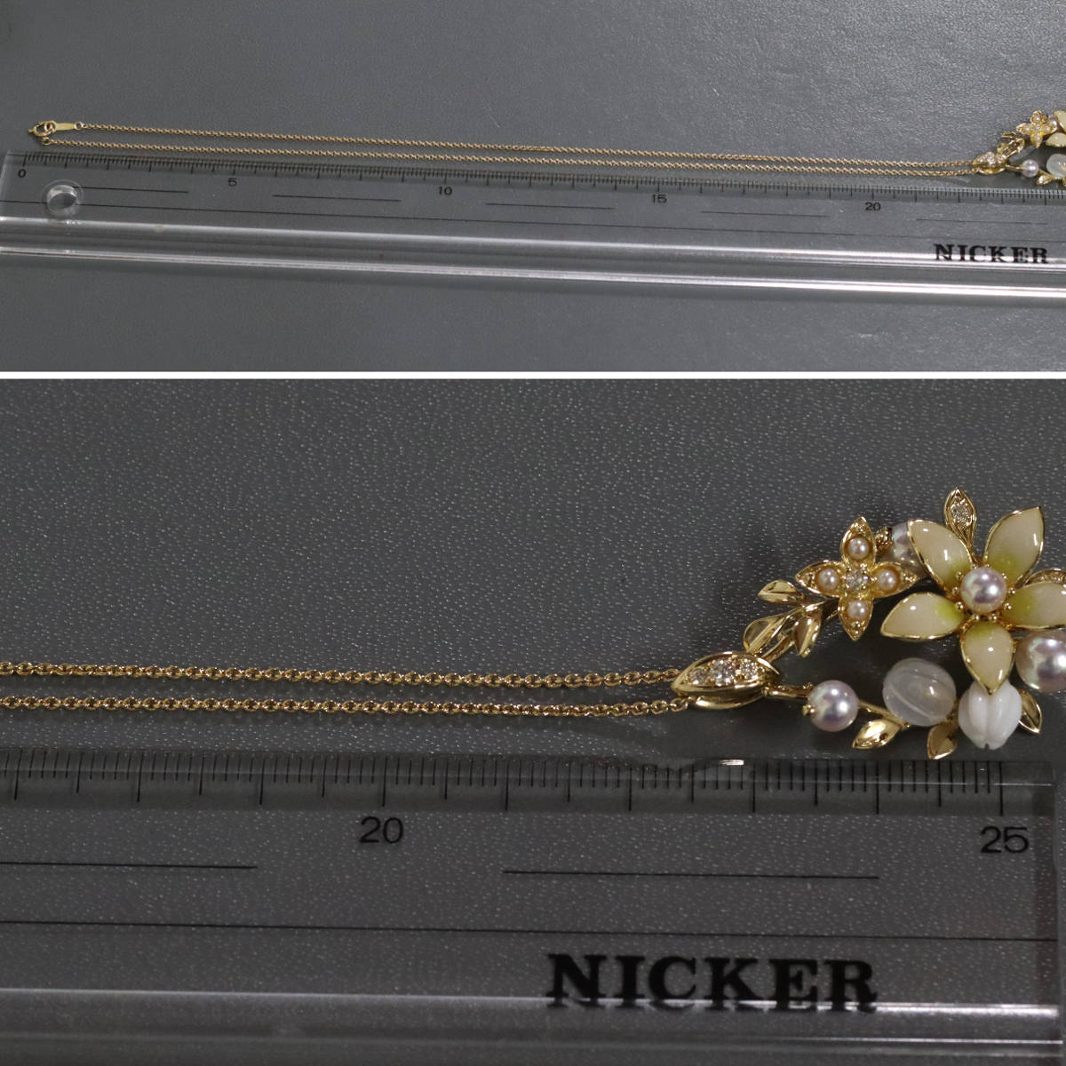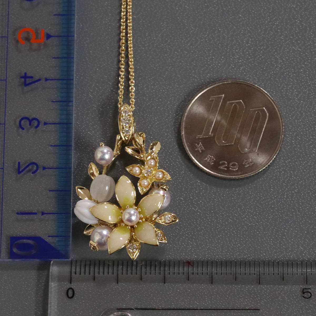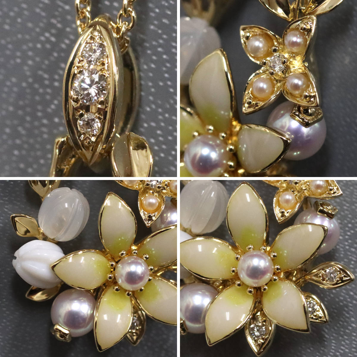ミキモト K18パールダイヤモンドペンダント フラワーモチーフ 11.6g 44cm