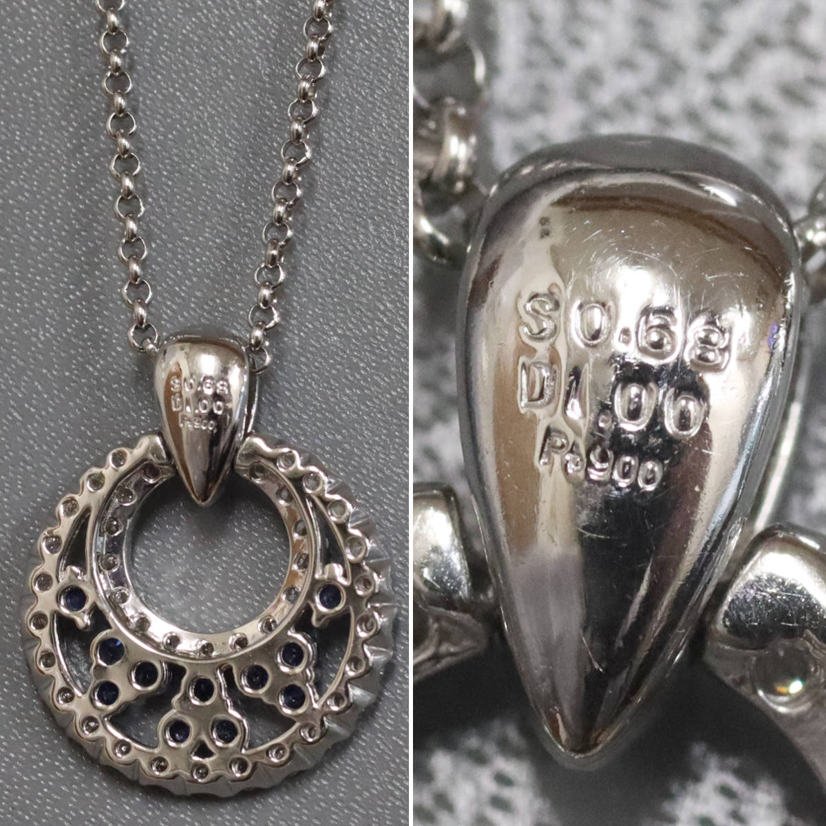 Pt900/850サファイアダイヤモンドペンダント S0.68 D1.00 13.8g 40cm