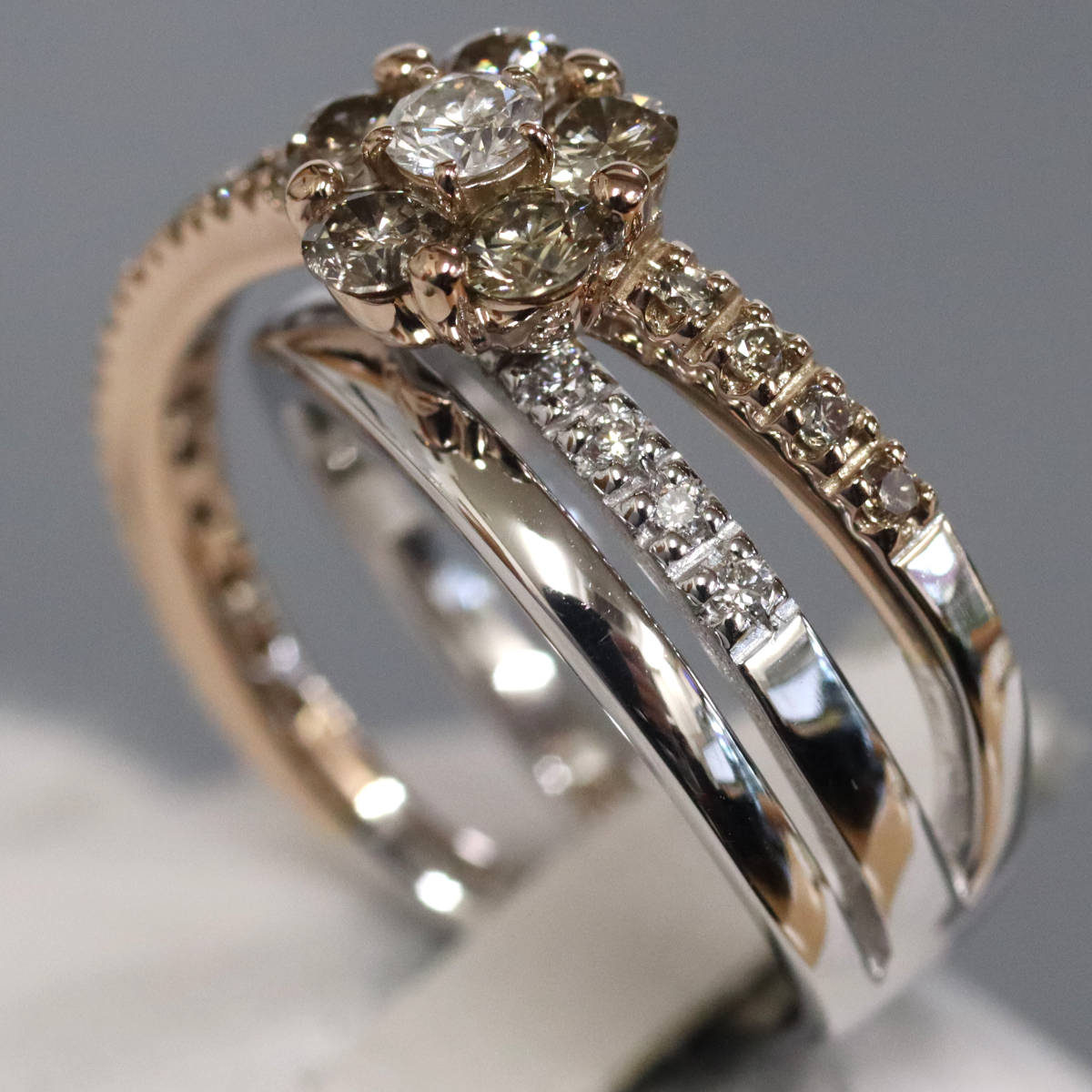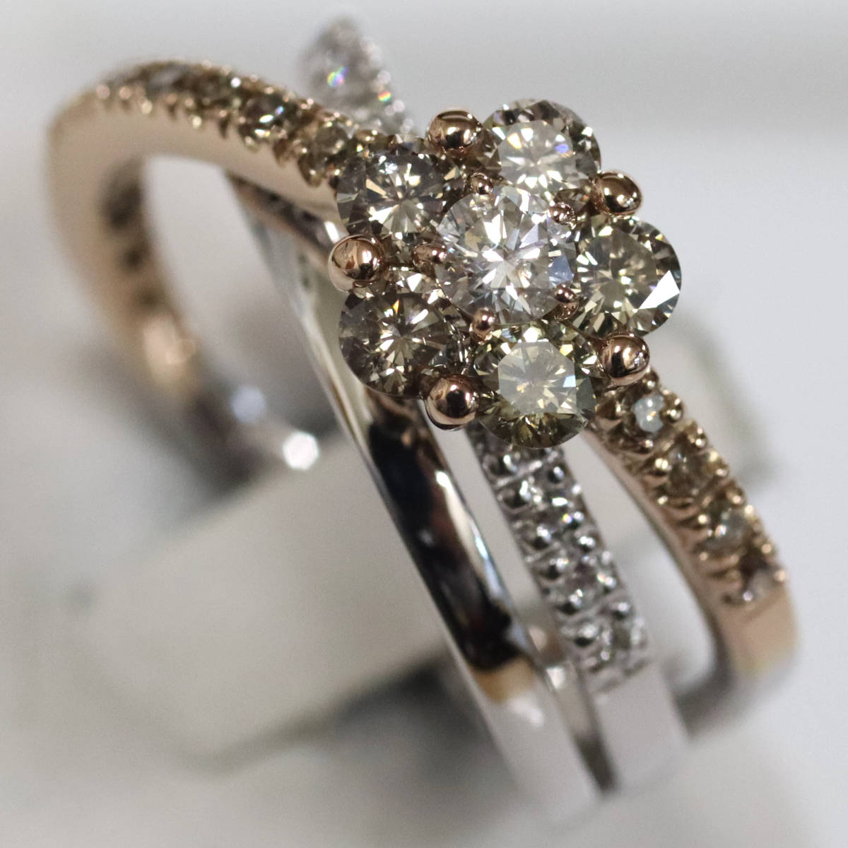 ポンテヴェキオ K18WG/PGダイヤモンドリング フラワーモチーフ D0.90 8.9g #11