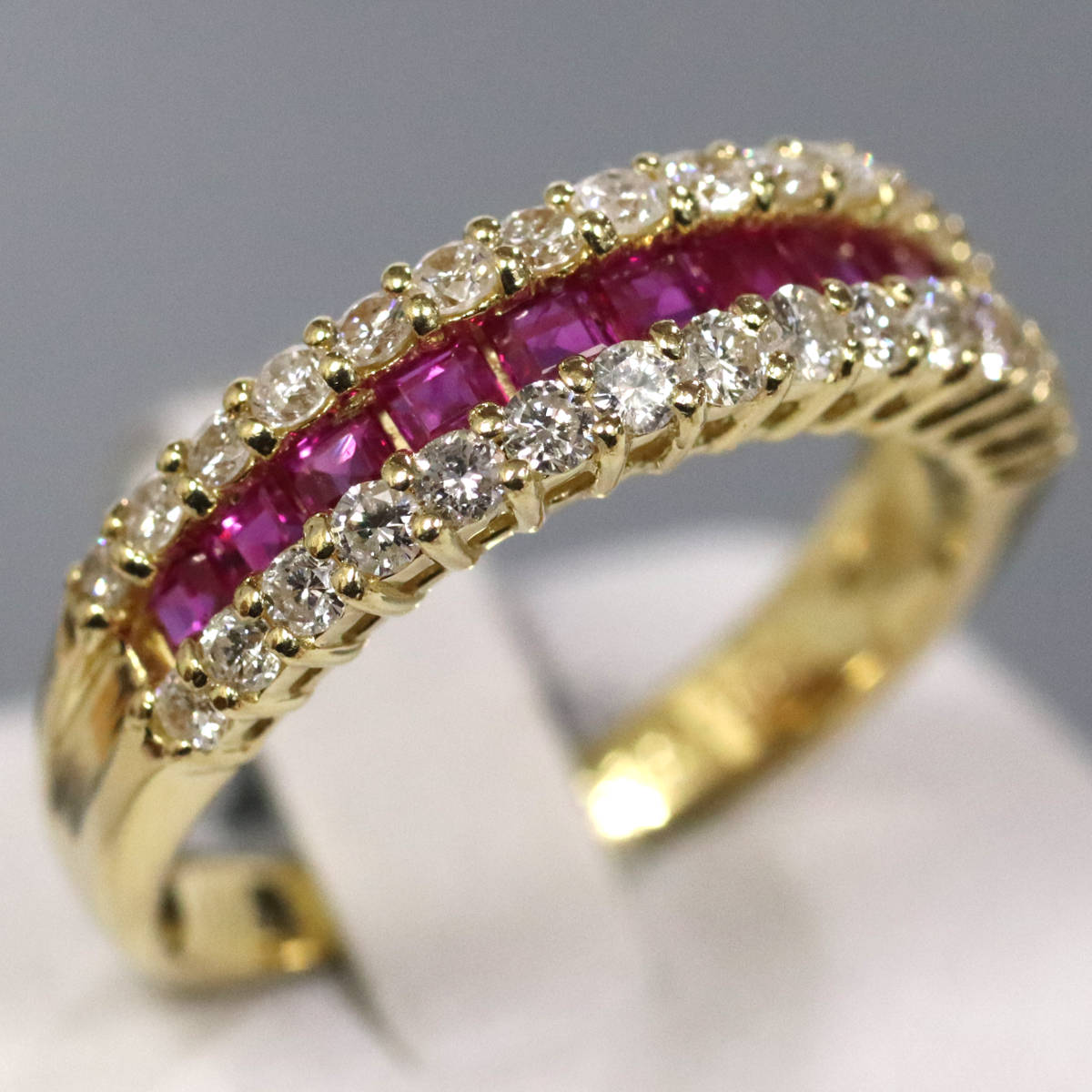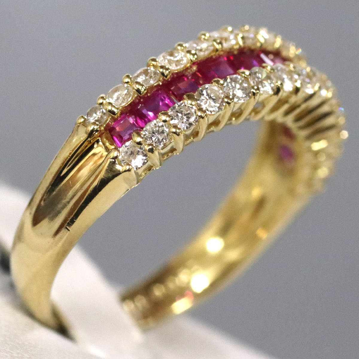 K18ルビーダイヤモンドリング R0.65 D0.60 4.6g #13 鑑別カード [26016015]