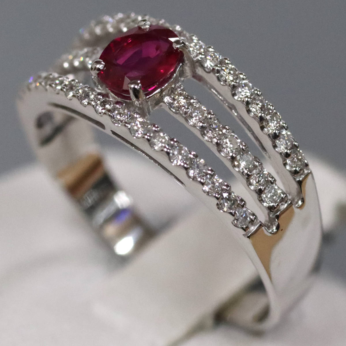K18WGルビーダイヤモンドリング R0.36 D0.24 3.0g #10.5 鑑別書