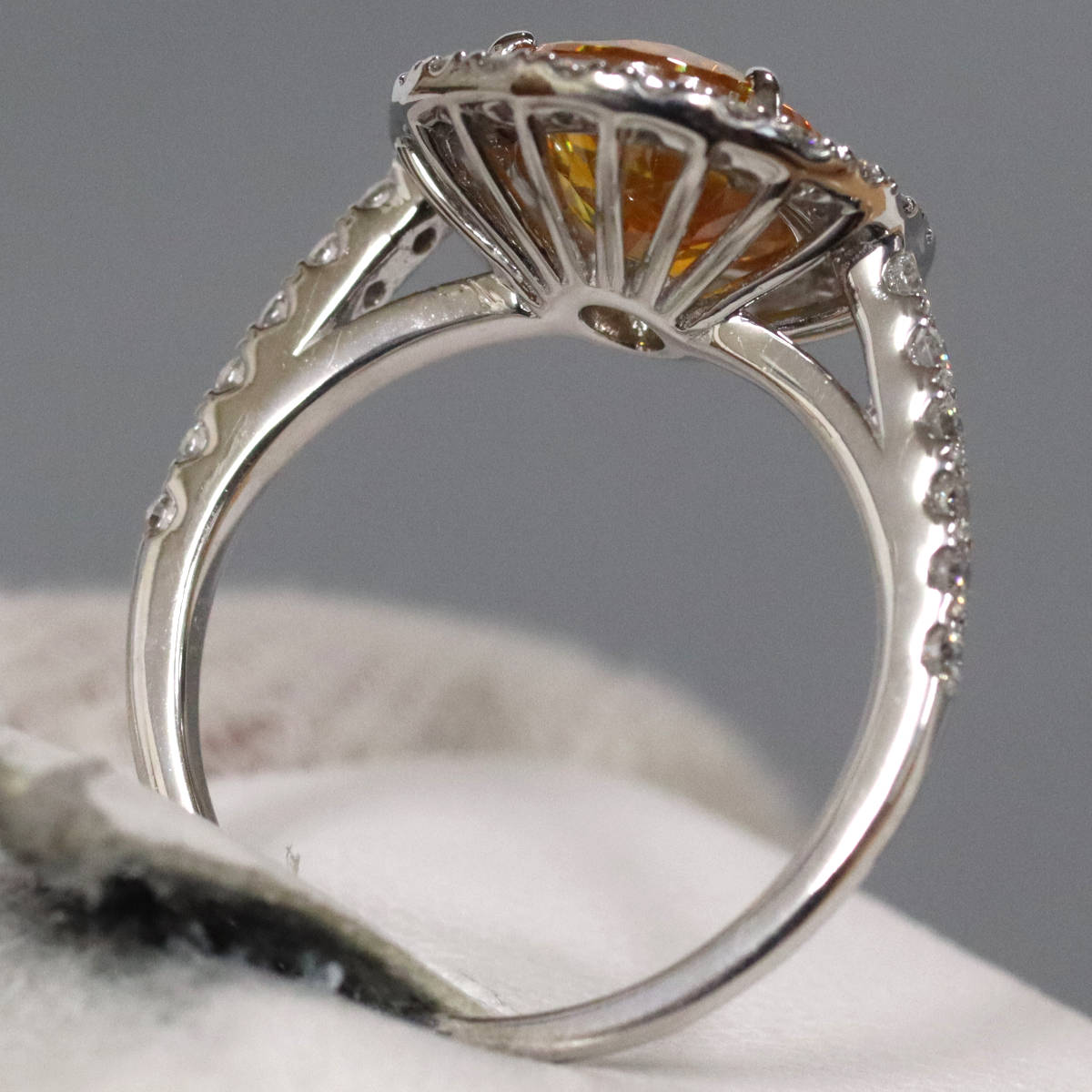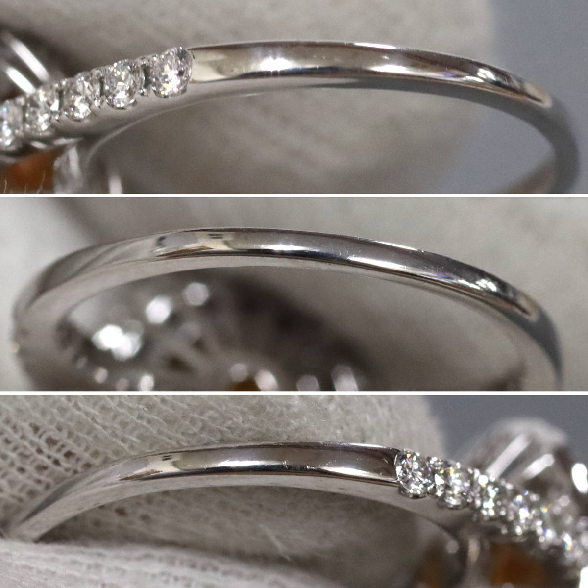 ダイヤモンドはわずかにインクルージョンがありますが、照りよく輝きます。