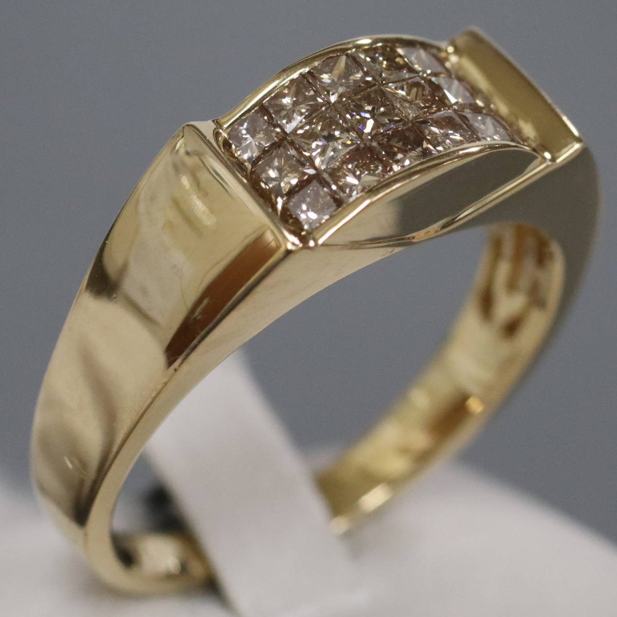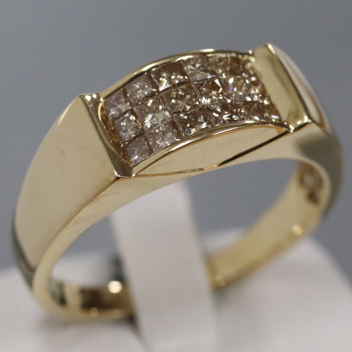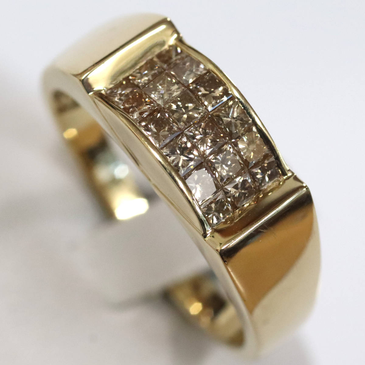 プリンセスカットのダイヤモンドがミステリーセッティングでセットされています。