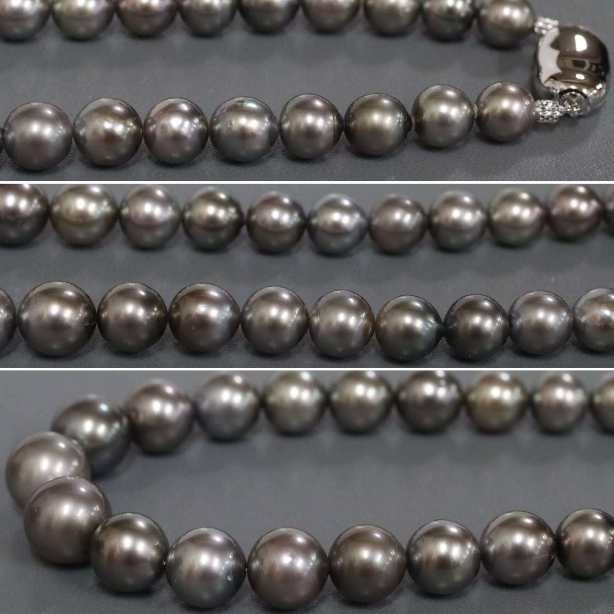 グレーパールネックレス シルバー金具 7.8-12.0mm 40cm