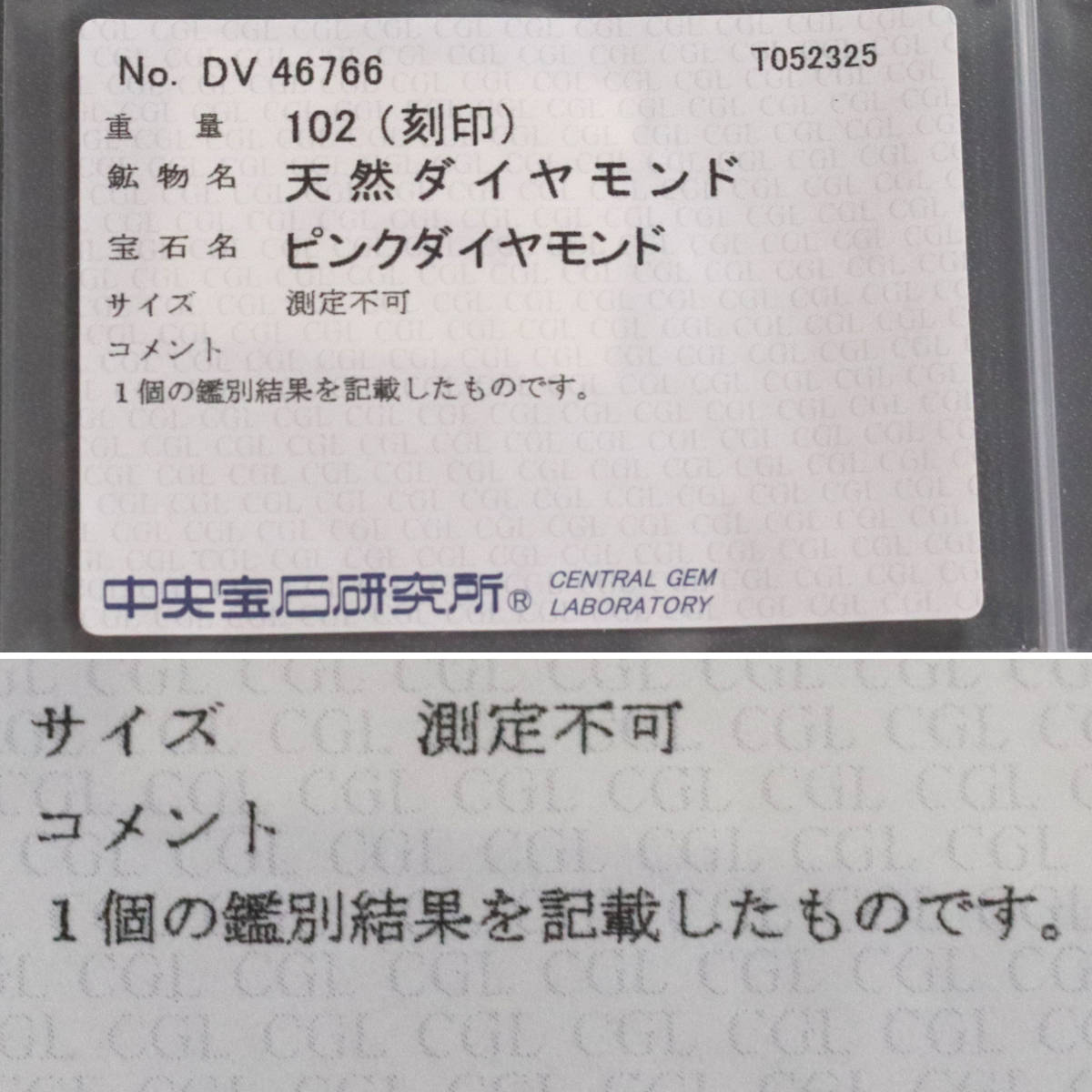 天然のピンクダイヤモンドと認めるソーティングが付属します。