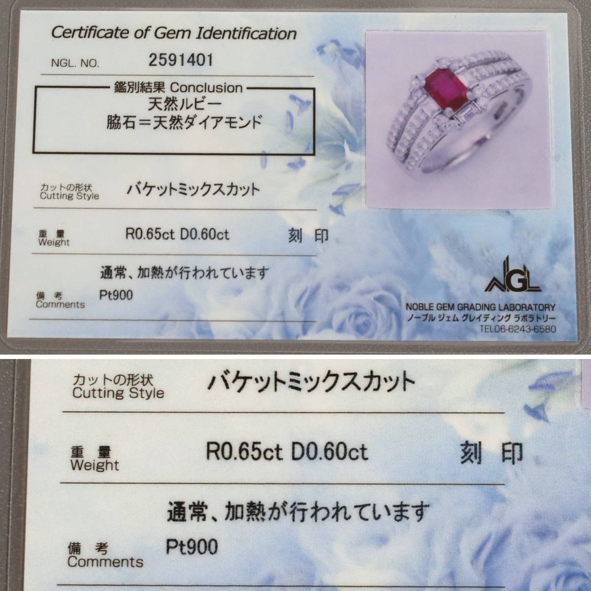 Pt900ルビーダイヤモンドリング R0.65 D0.60 6.1g #10 鑑別カード