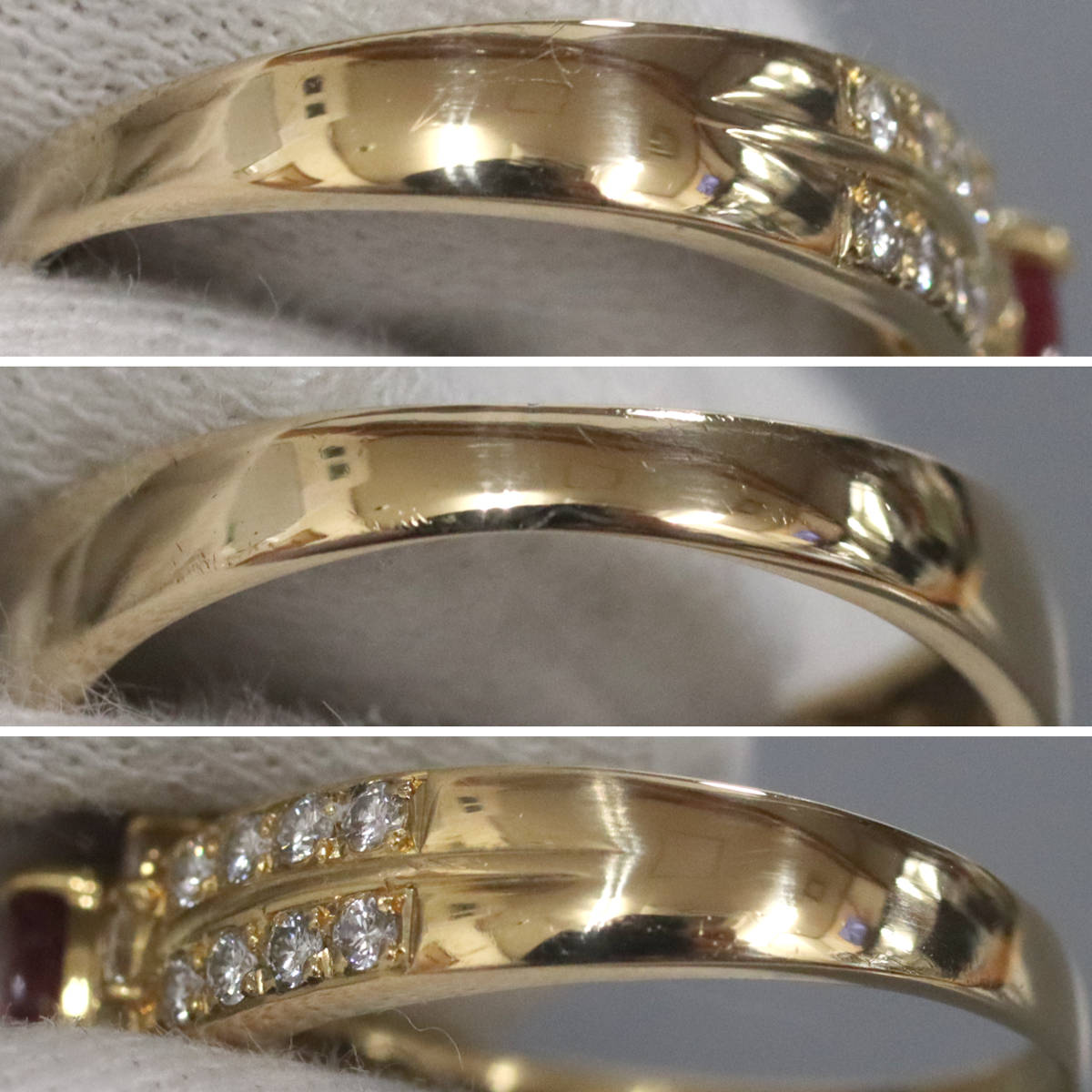 地金には小傷があります。K18ルビーダイヤモンドリングの中古品です。