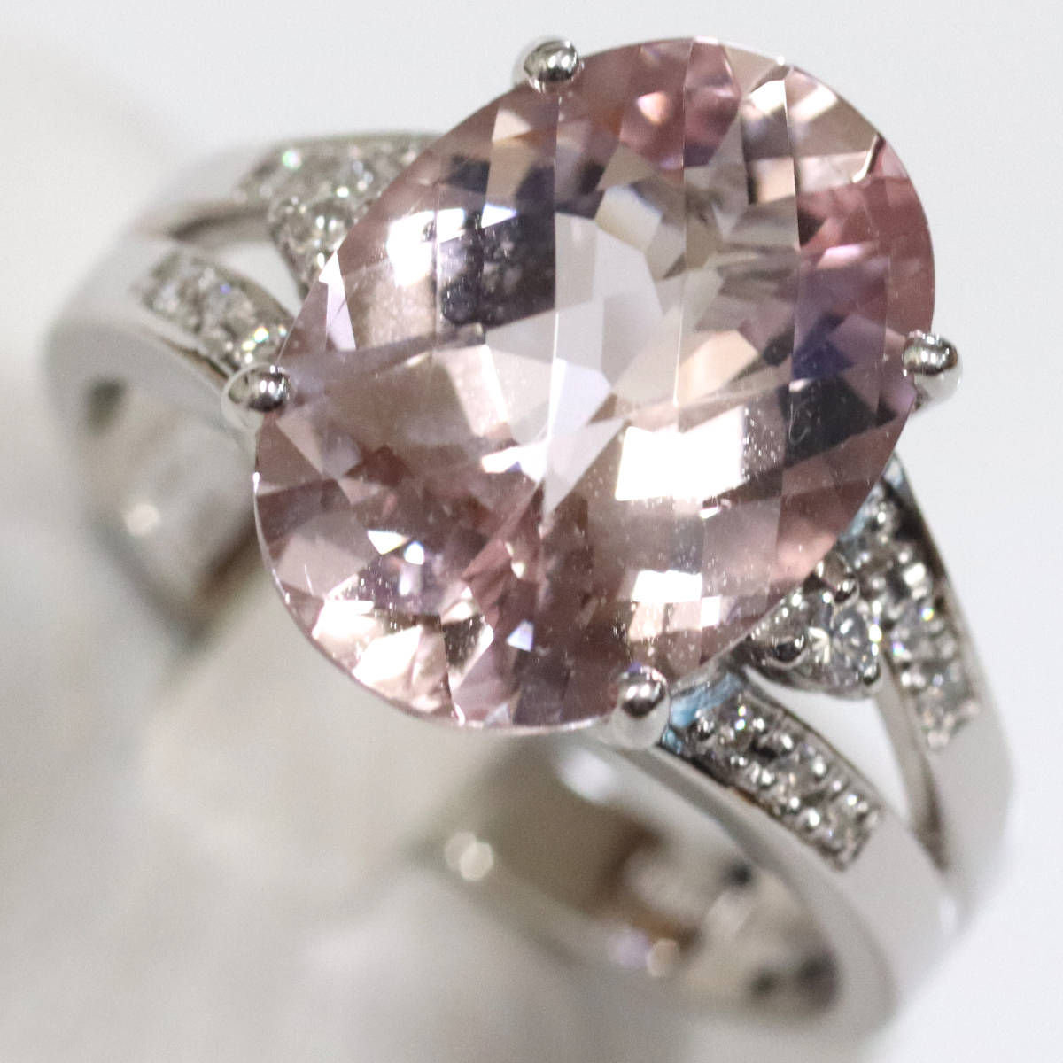 K18WGモルガナイトダイヤモンドリングの中古品です。