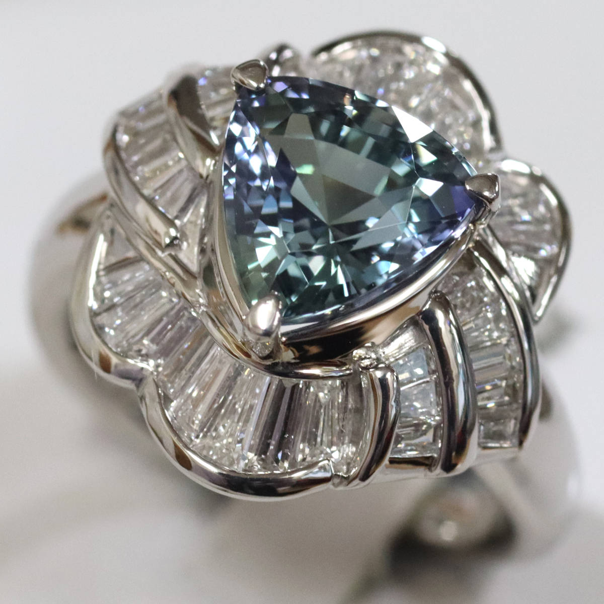 Pt900ゾイサイトダイヤモンドリング 2.767 D0.83 11.2g #13 鑑別カード