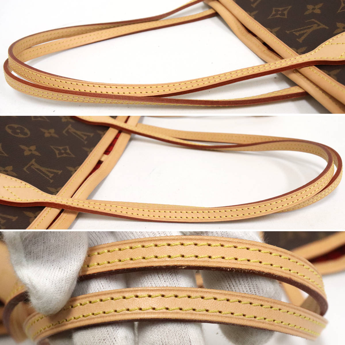 ハンドル付け根のヌメ革にわずかに染みがありますが、かなり程度の良い美品です。