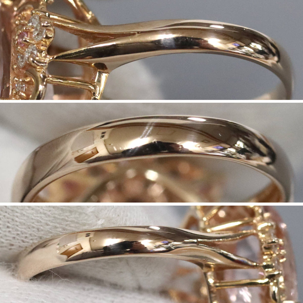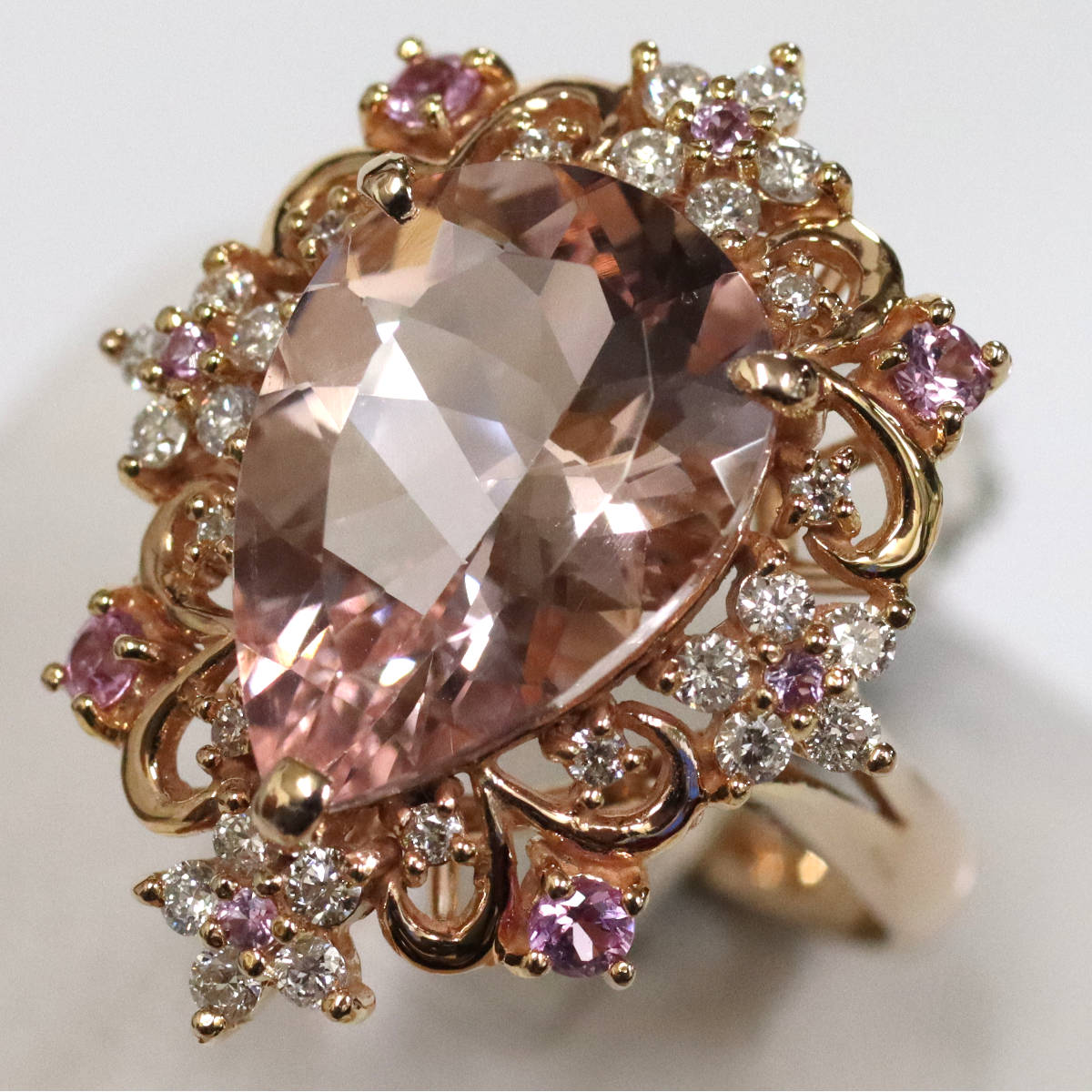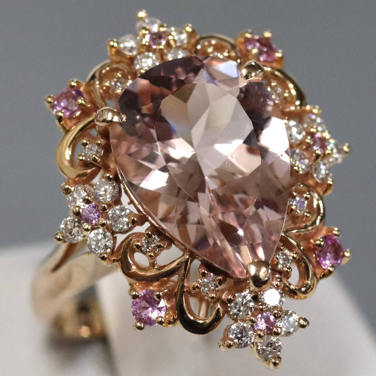 K18PGモルガナイトダイヤモンドサファイアリングの中古品です。