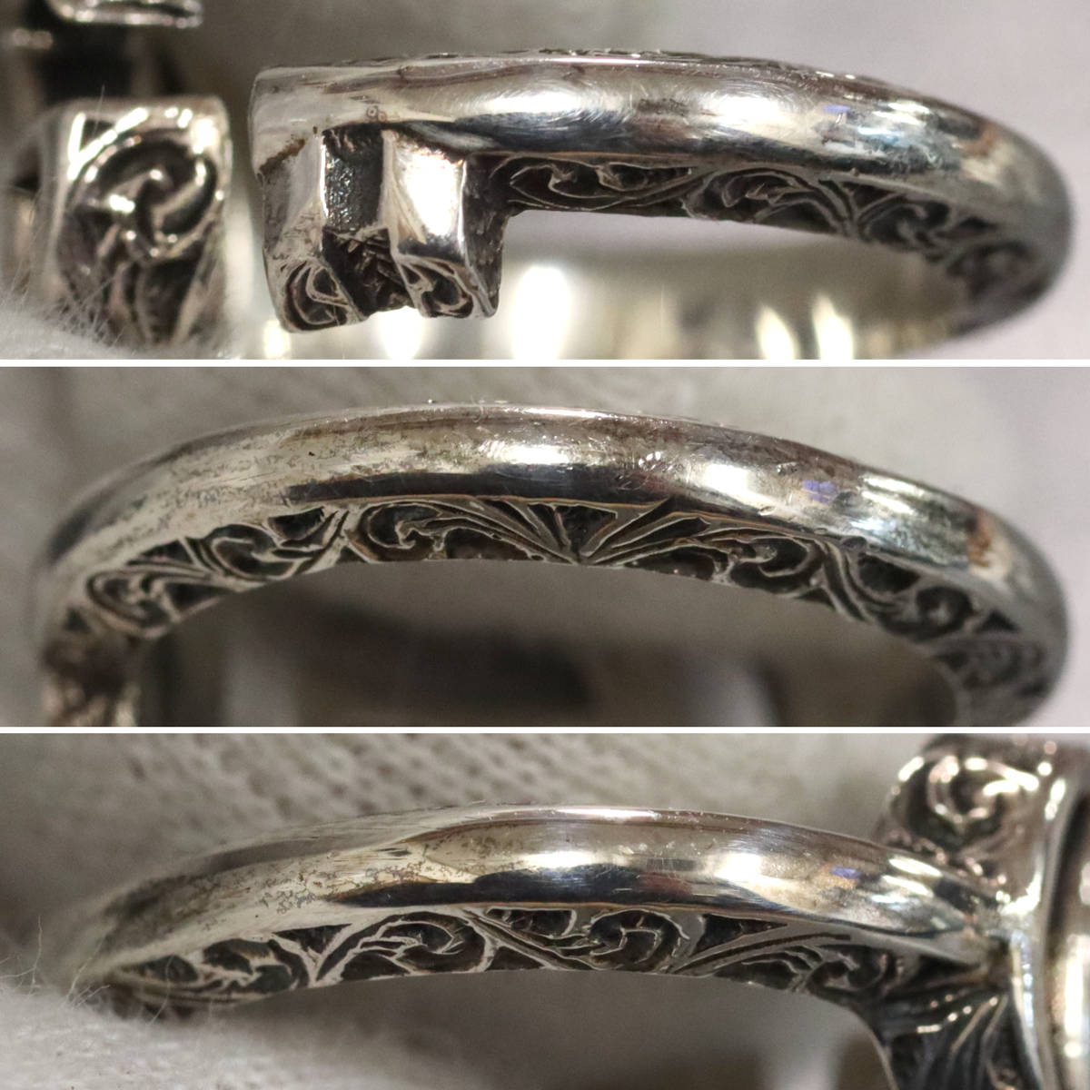全体的にシルバー特有の変色やサビが見られます。