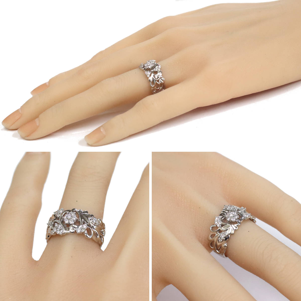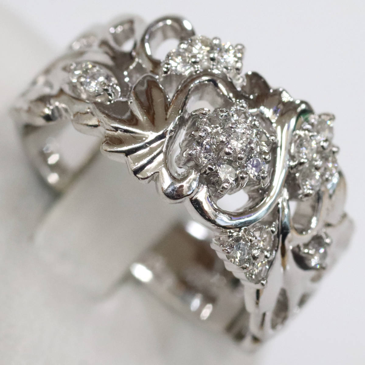 Pt900ダイヤモンドリング フラワーモチーフ D0.27 9.6g #11