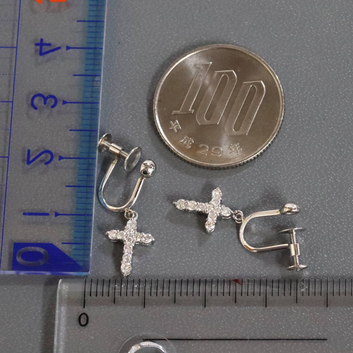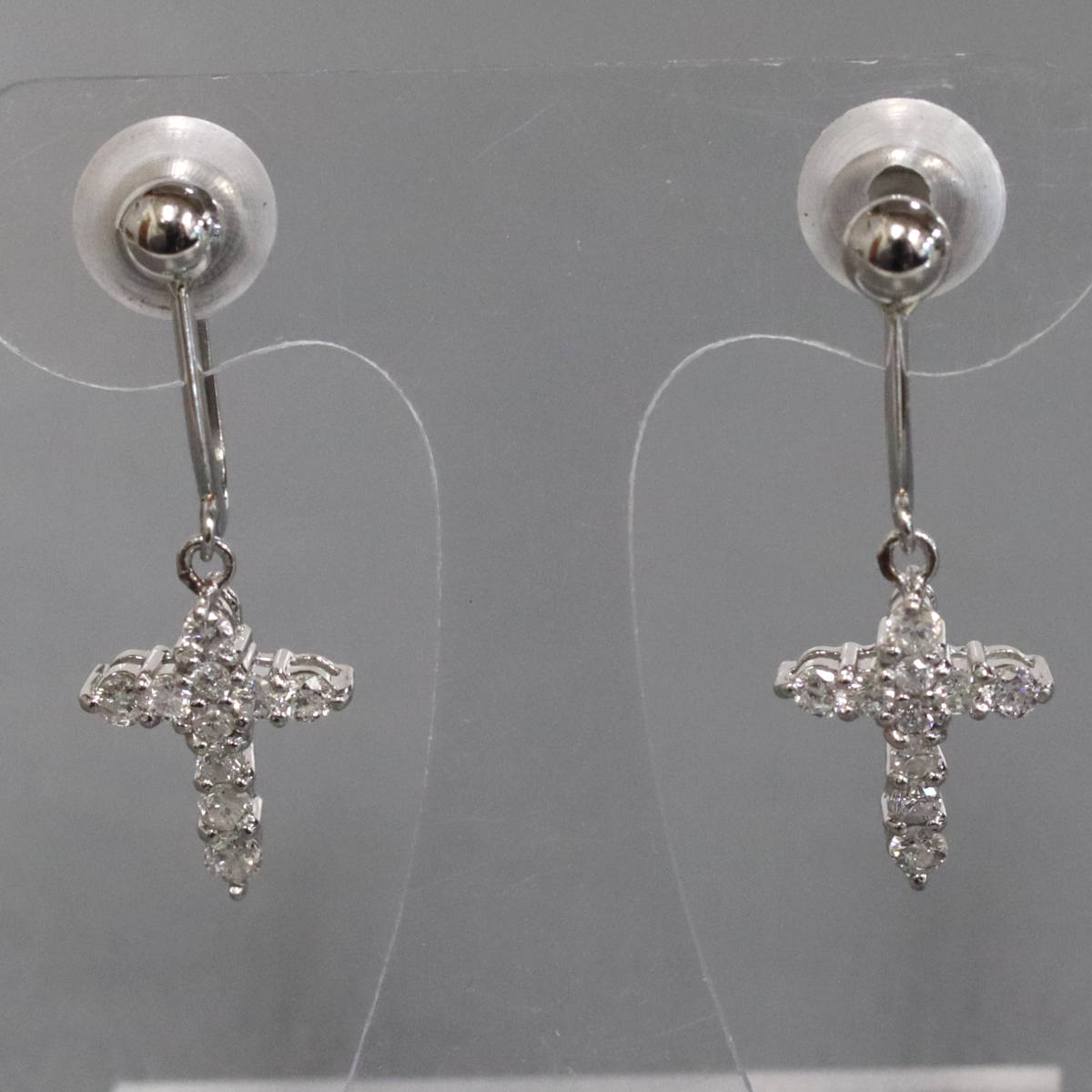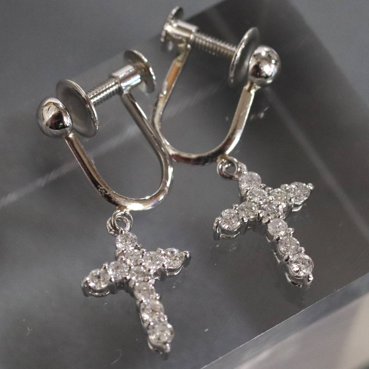 Pt900ダイヤモンドイヤリング クロスモチーフ D0.15×2 2.2g