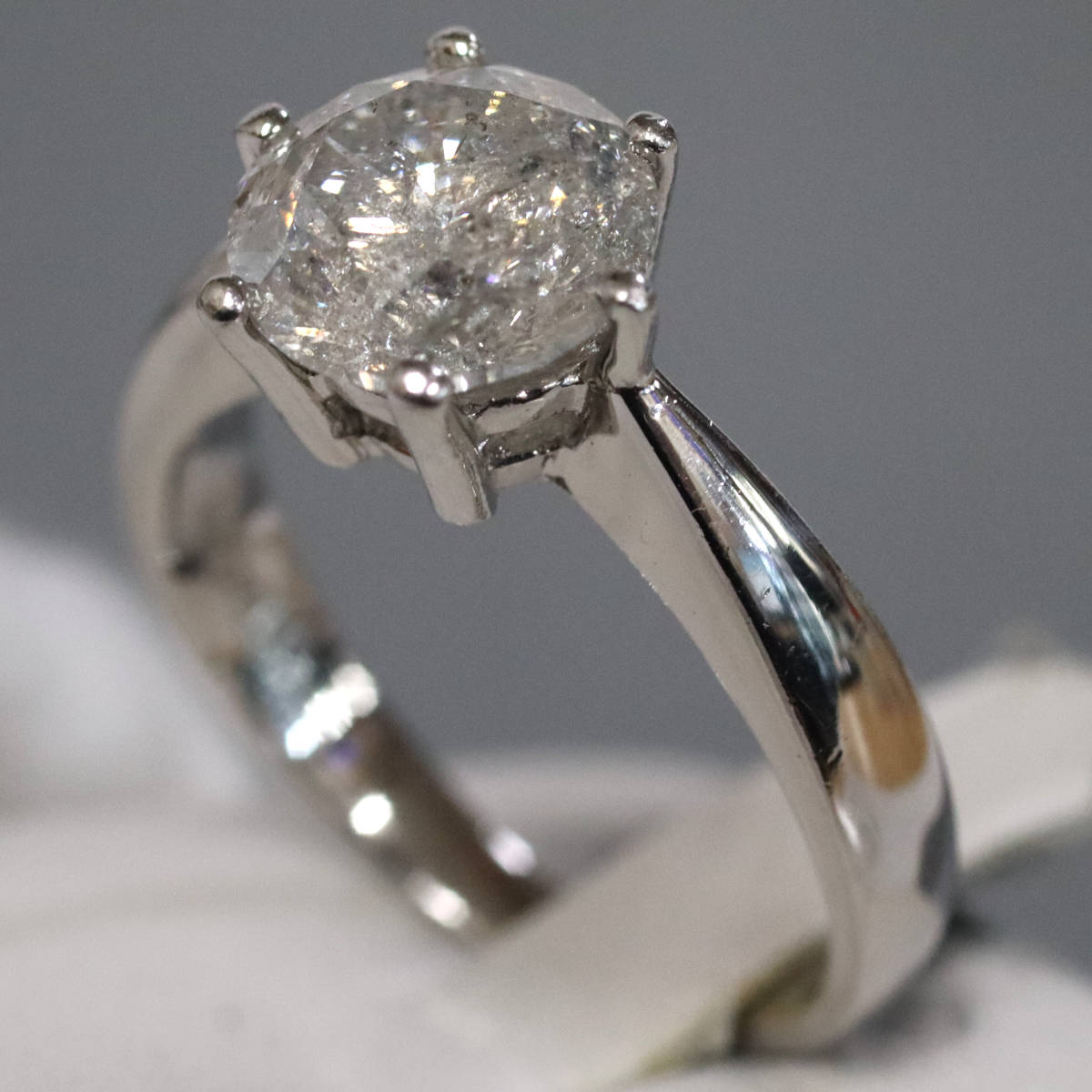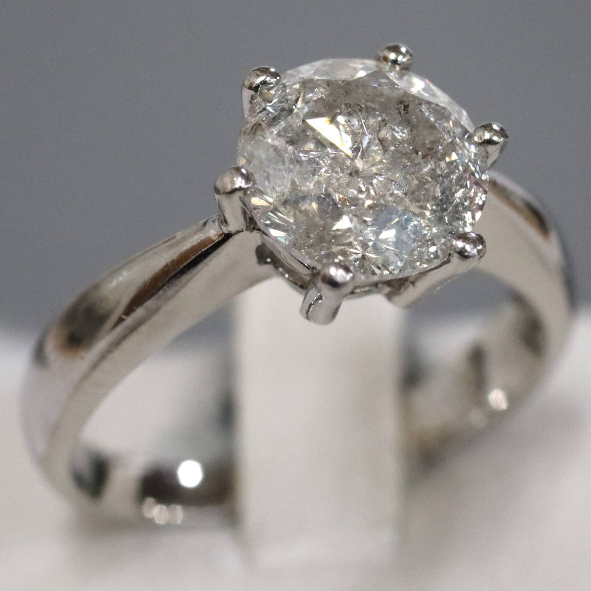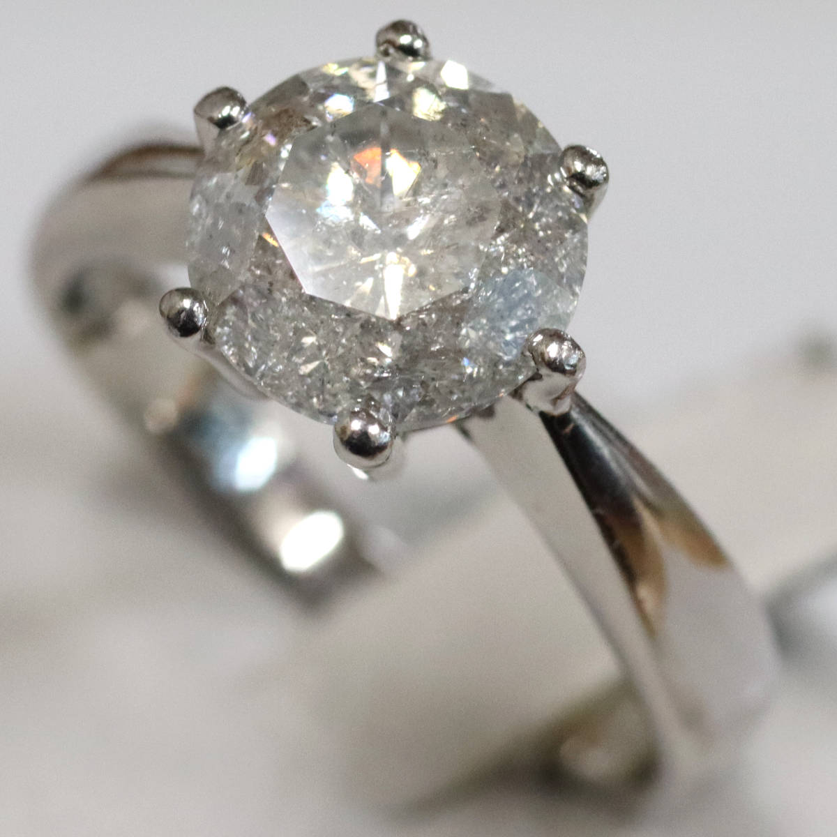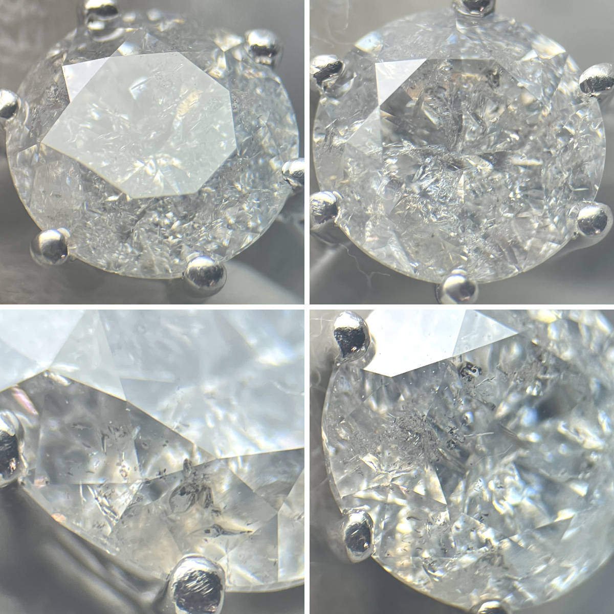 ダイヤモンドは2.481カラットと大粒ですが、インクルージョンが多くクラリティはI-3程度です。