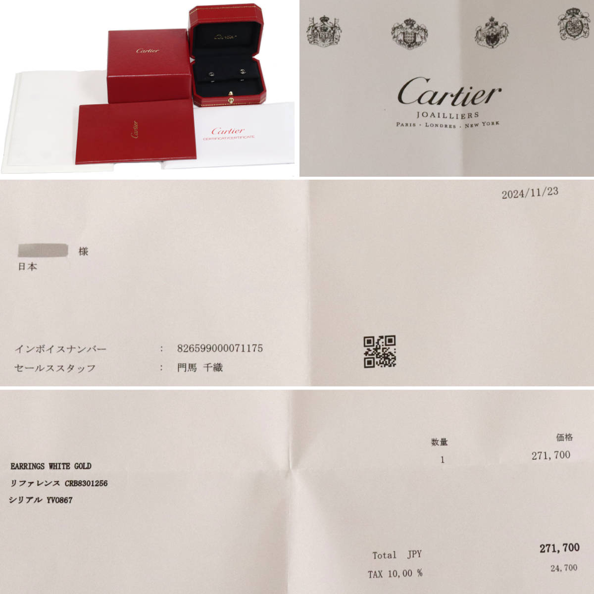 保証書及び購入明細書(インボイス)が付属し、記載の購入日は2024年11月23日です。
