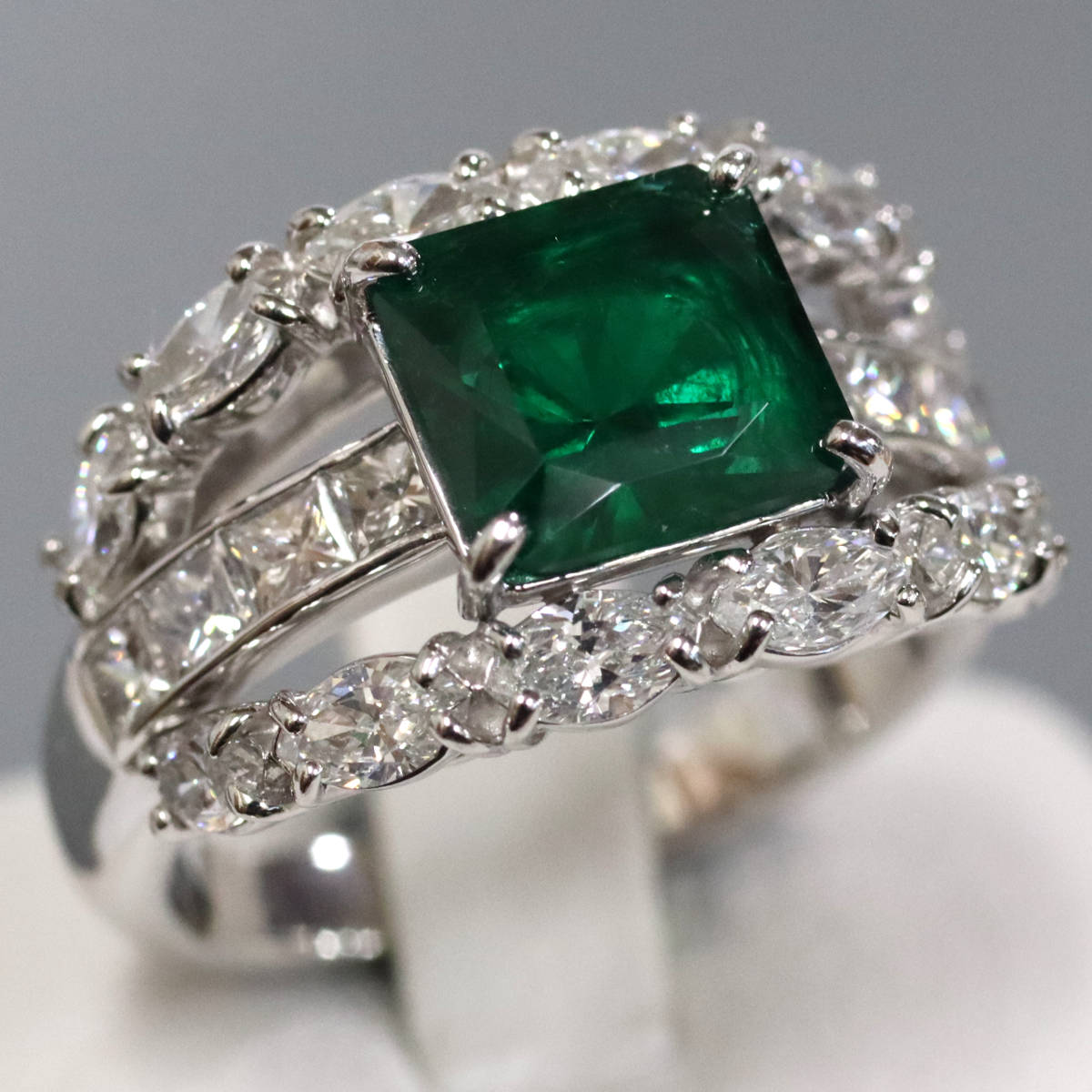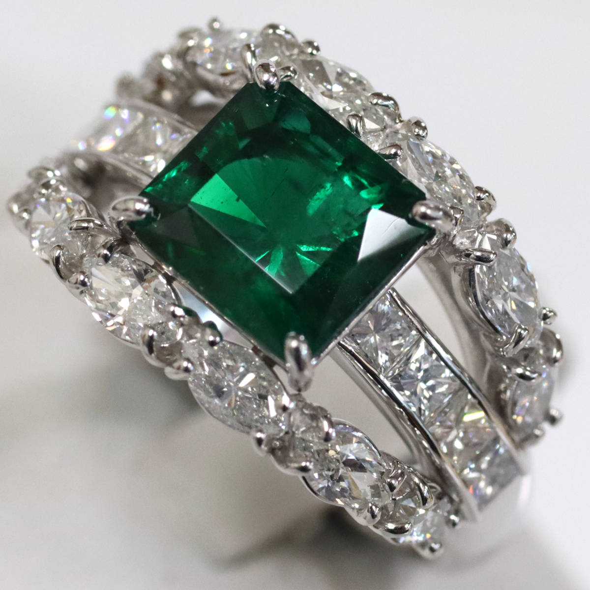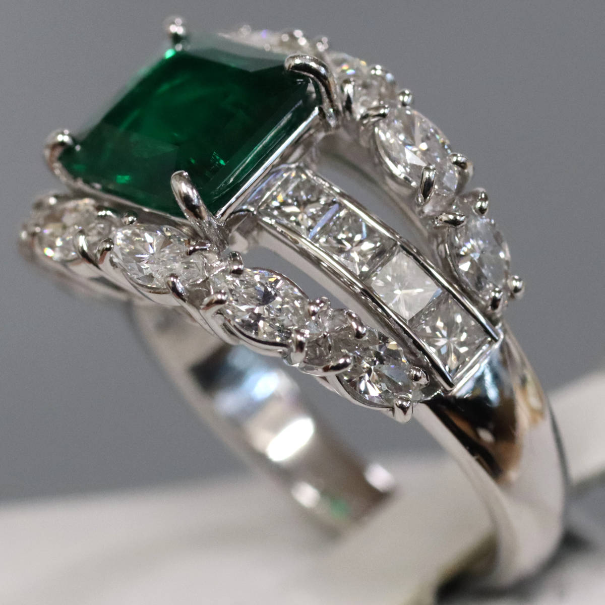 Pt900エメラルドダイヤモンドリング E2.06 D1.78 11.0g #14 GIA鑑定書
