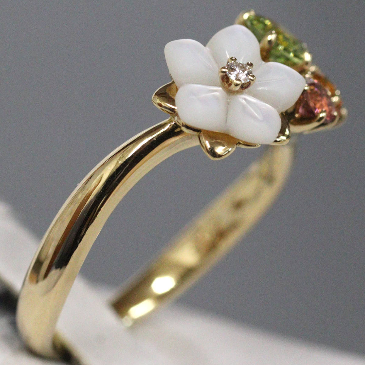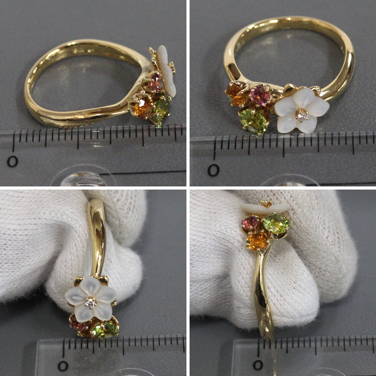 タサキ K18マルチカラーストーンリング フラワーモチーフ D0.01 4.6g #12-12.5