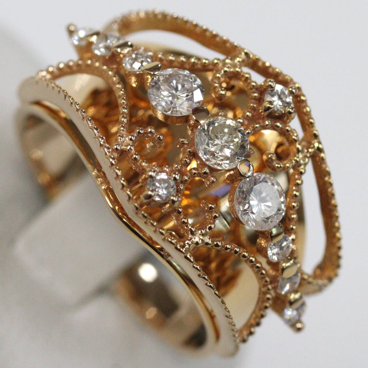 ピンクゴールドのため、当店ではサイズ直しのできないお品物です。