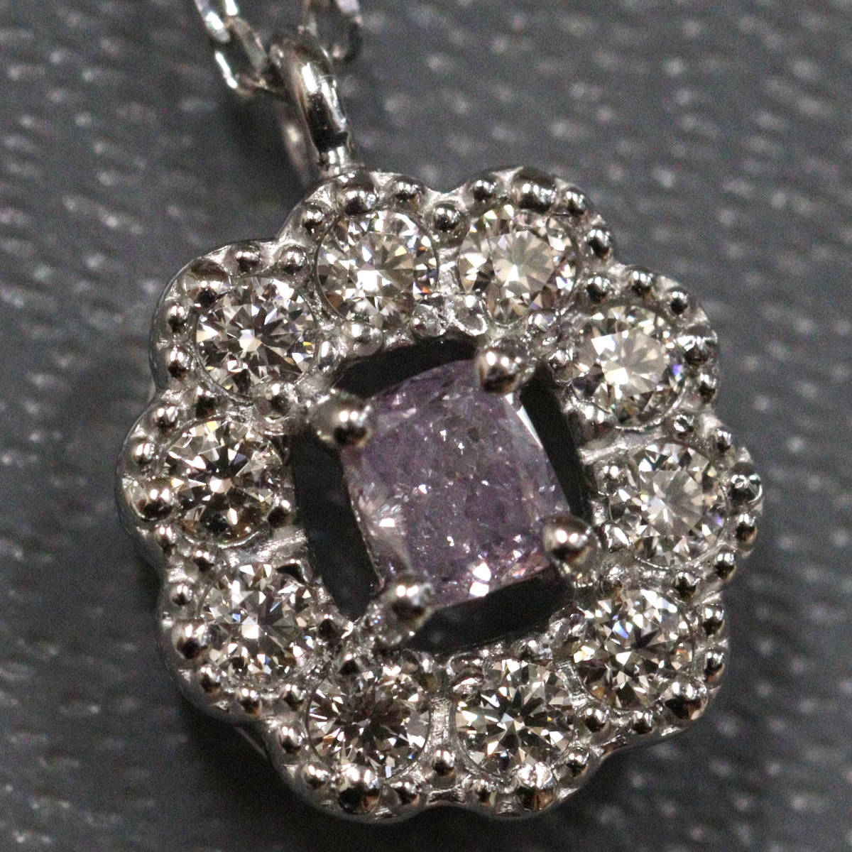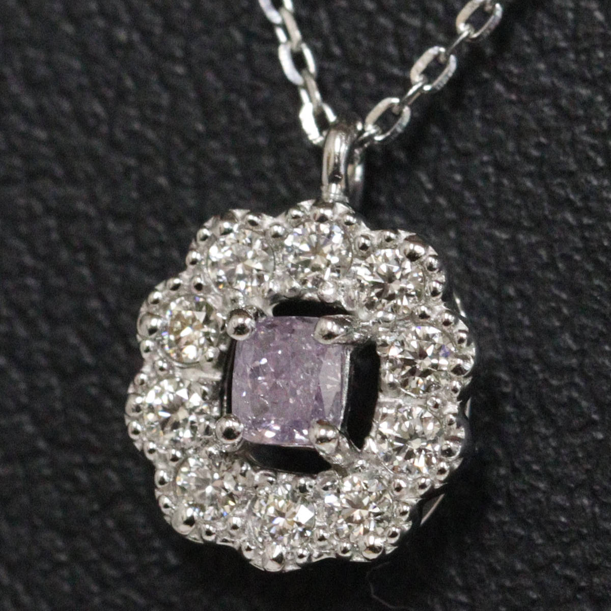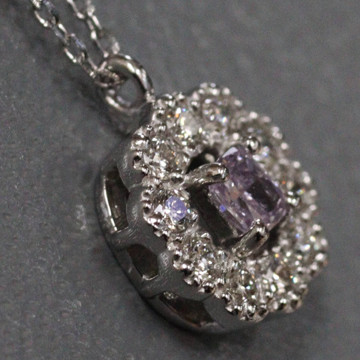 Pt950/850パープルダイヤモンド/ダイヤモンドネックレス D0.088 D0.11 2.3g AJ付45cm 鑑定書