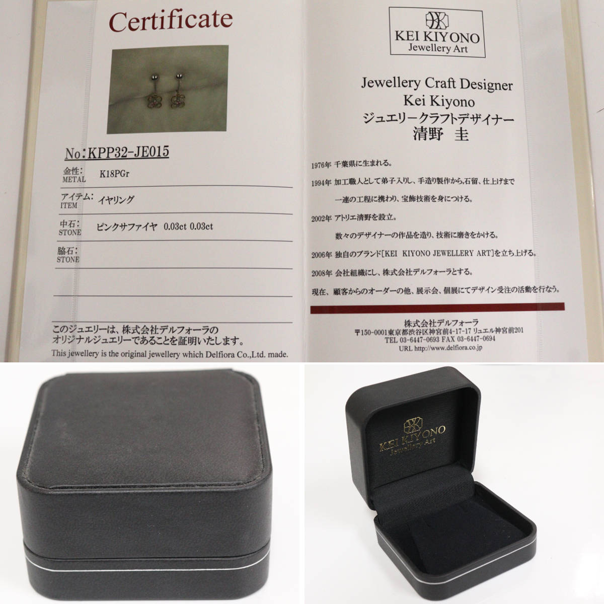 清野圭 K18WG/PGピンクサファイアイヤリング PS0.03×2 2.7g 証明書