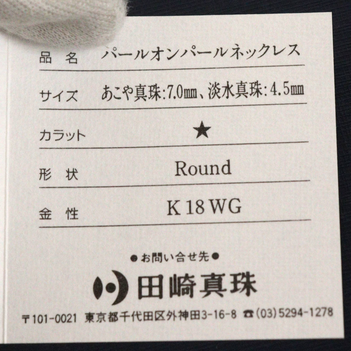 タサキ K18WGパールネックレス あこや7.4mm 淡水4.6mm 32cm 保証書 [26033173]
