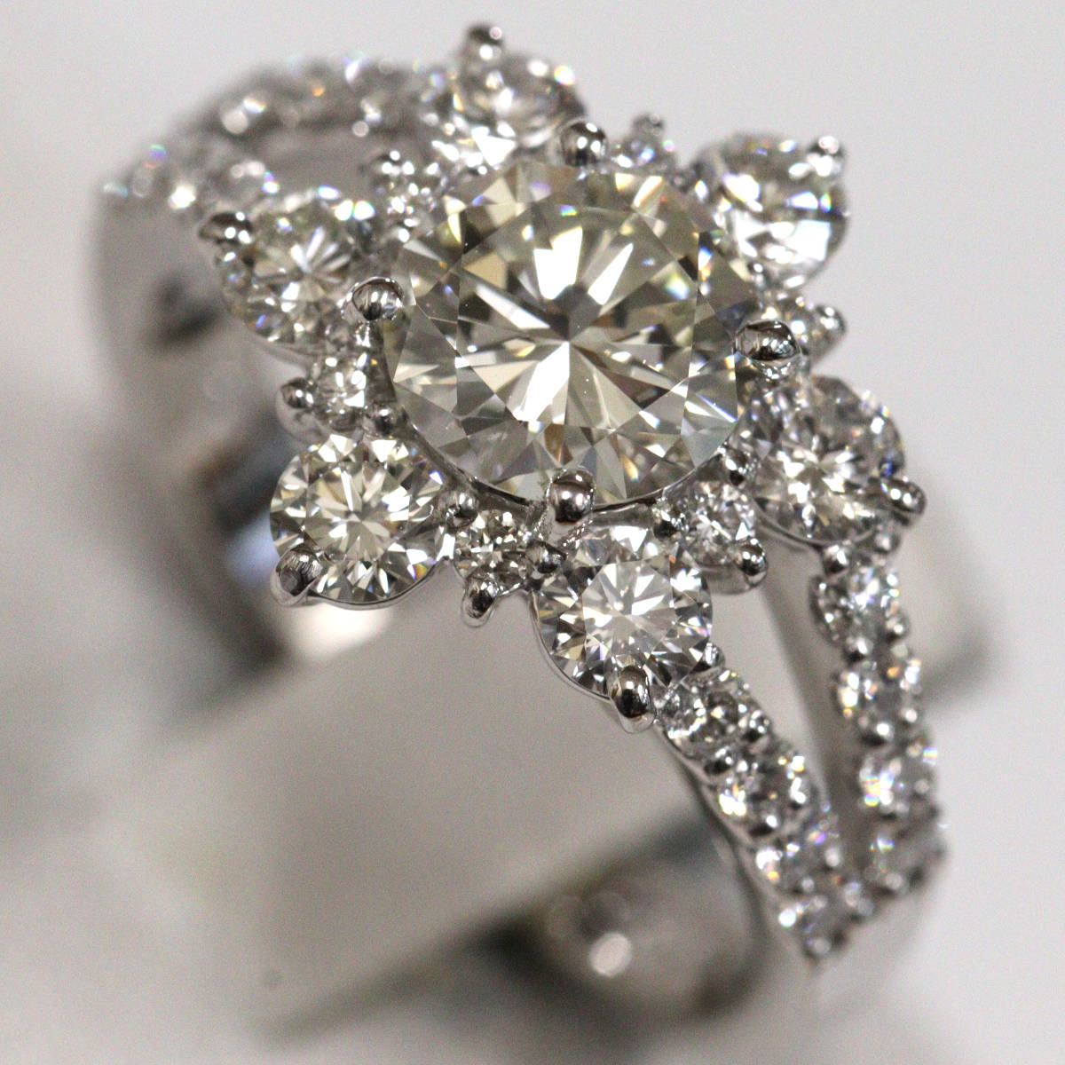 ダイヤモンドがきらきらと輝くゴージャスなリングです。