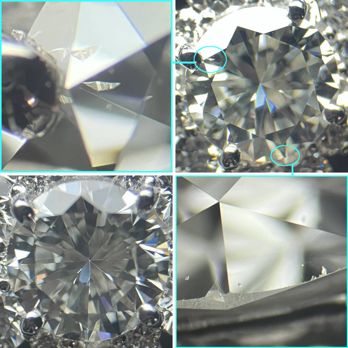 メレダイヤモンドは無色に近い色味で、わずかにインクルージョンがありますが、照りよく輝きます。