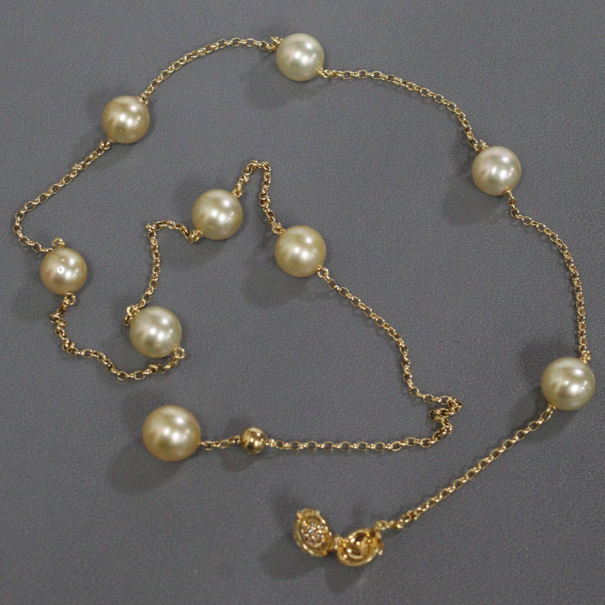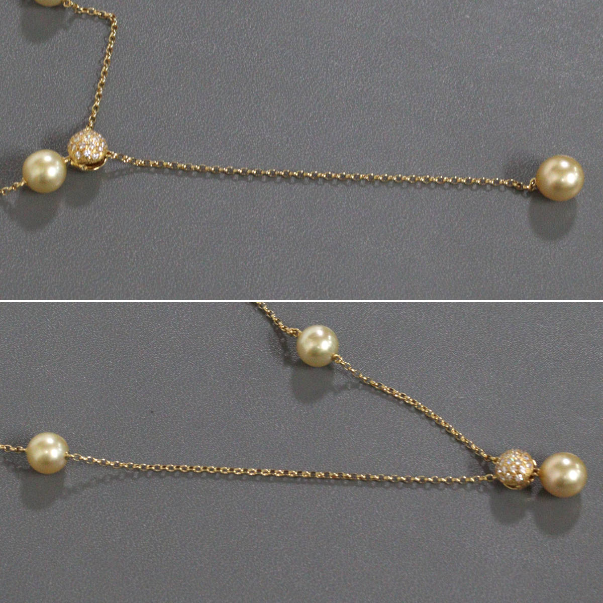 ミキモト K18ゴールデンパールダイヤモンドネックレス 9.0-9.6mm 17.7g AJ付44-54cm [26043015]