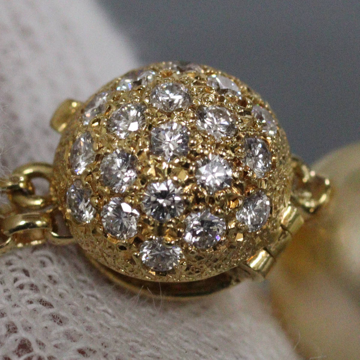 留め具にセットされたダイヤモンドはインクルージョンが少なく照りよく輝きます。