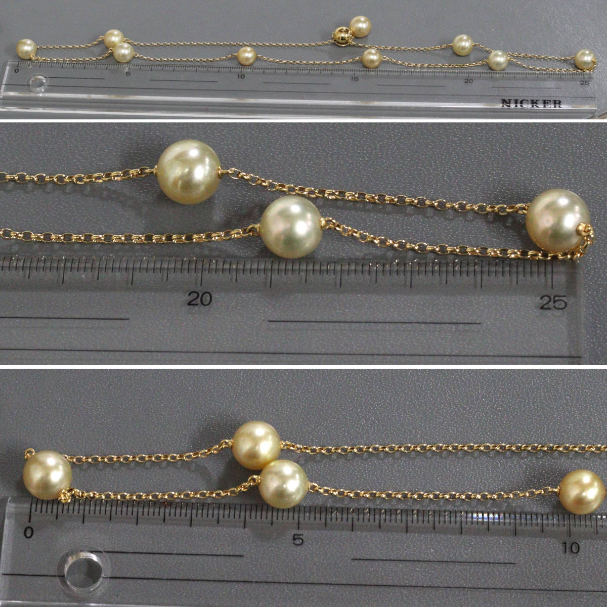 ミキモト K18ゴールデンパールダイヤモンドネックレス 9.0-9.6mm 17.7g AJ付44-54cm