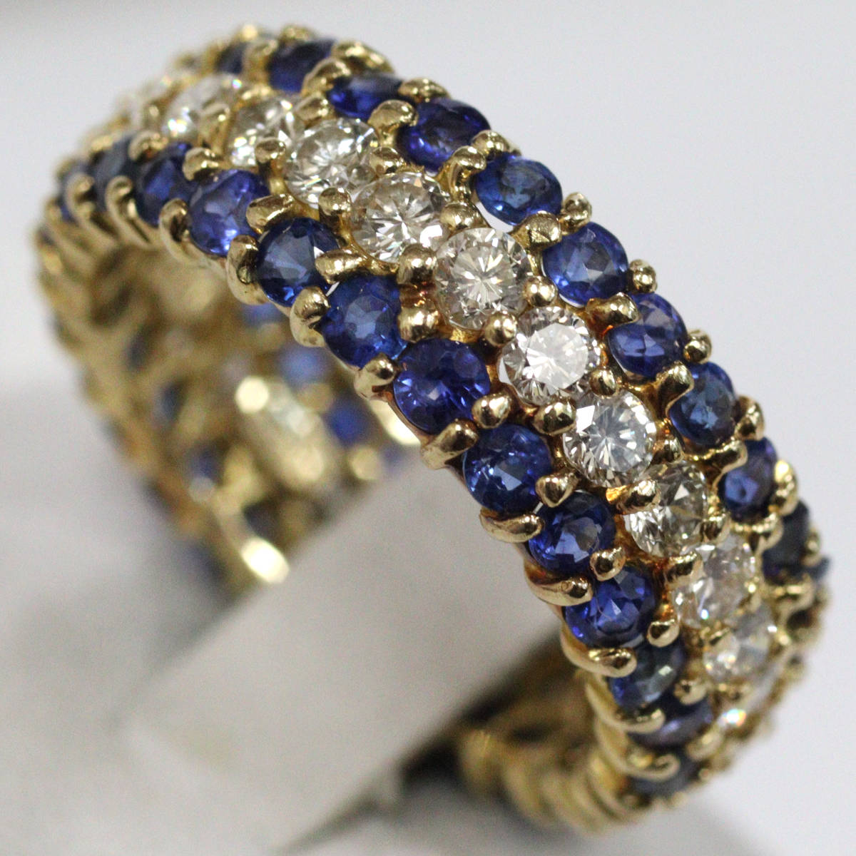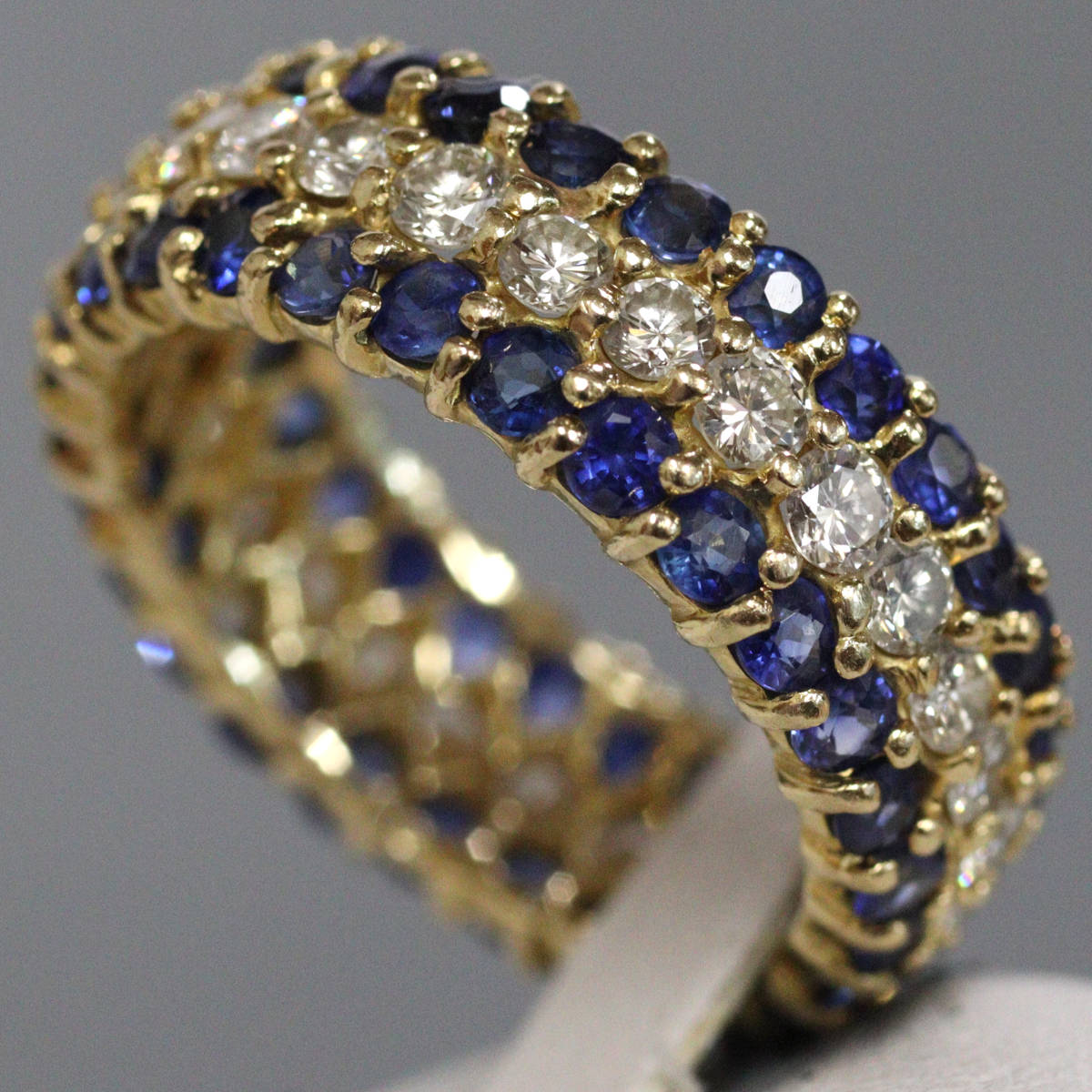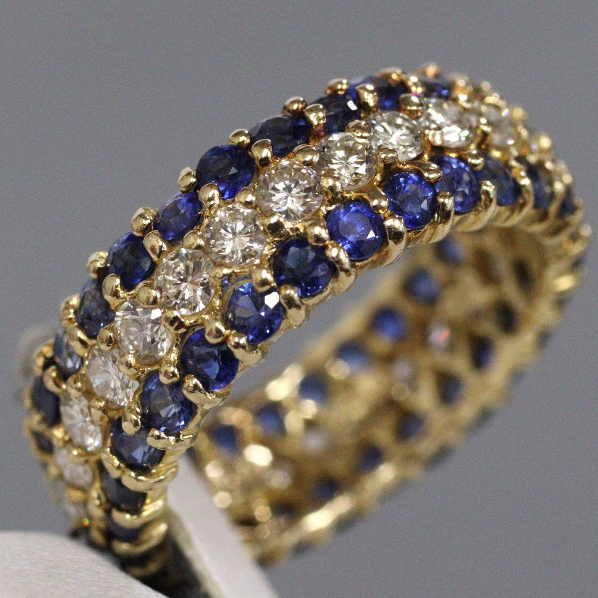 サファイアの間にダイヤモンドがセットされたフルエタニティリングです。